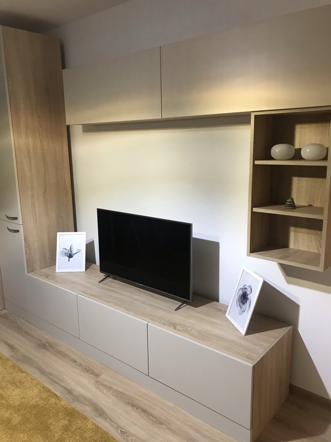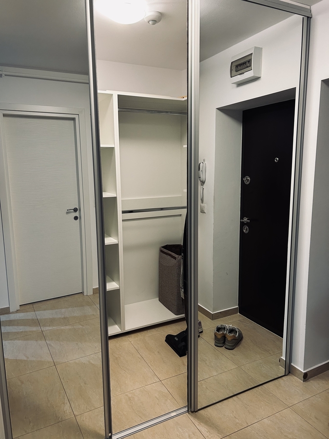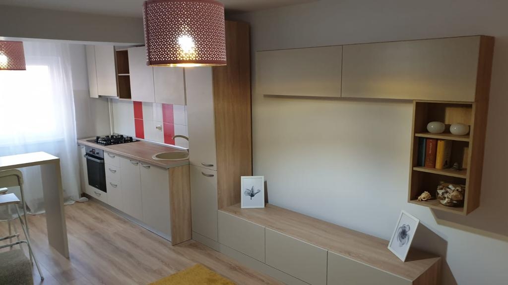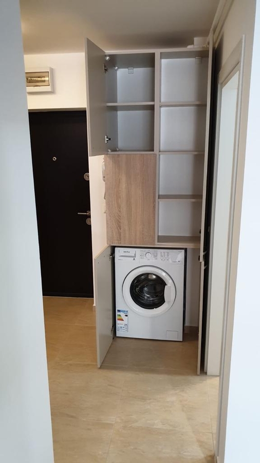 Proprietar, ofer spre inchiriere apartament luminos, foarte curat si cu vibe bun, cu 2 camere situat Bucuresti, Sectorul 3, in complexul rezidential Palladium Residence 1. Apartamentul se afla la etajul 9 al unui imobil dat in folosinta in iunie 2019 si are balcon din sticla. Este utilat cu aer conditionat, masina de spalat rufe, plita pe gaz, cuptor electric, hota, fier de calcat, aspirator vertical, centrala termica. La mobilarea si amenajarea apartamentului am apelat la ajutorului unui arhitect, astfel incat sa eficientizam spatiul si locurile de depozitare si sa armonizam culorile. Pe hol a fost amenajat un dulap walk in foarte generos.