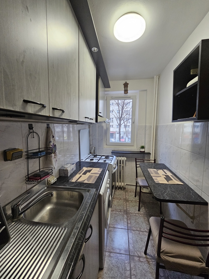 Aleea Vergului nr 7, apartament 2 camere, semidecomandat, etajul 1 intr-un imobil P+10, cu o suprafata de 38 mp, mobilat, utilat, boiler, aer conditionat, bloc reabilitat termic.