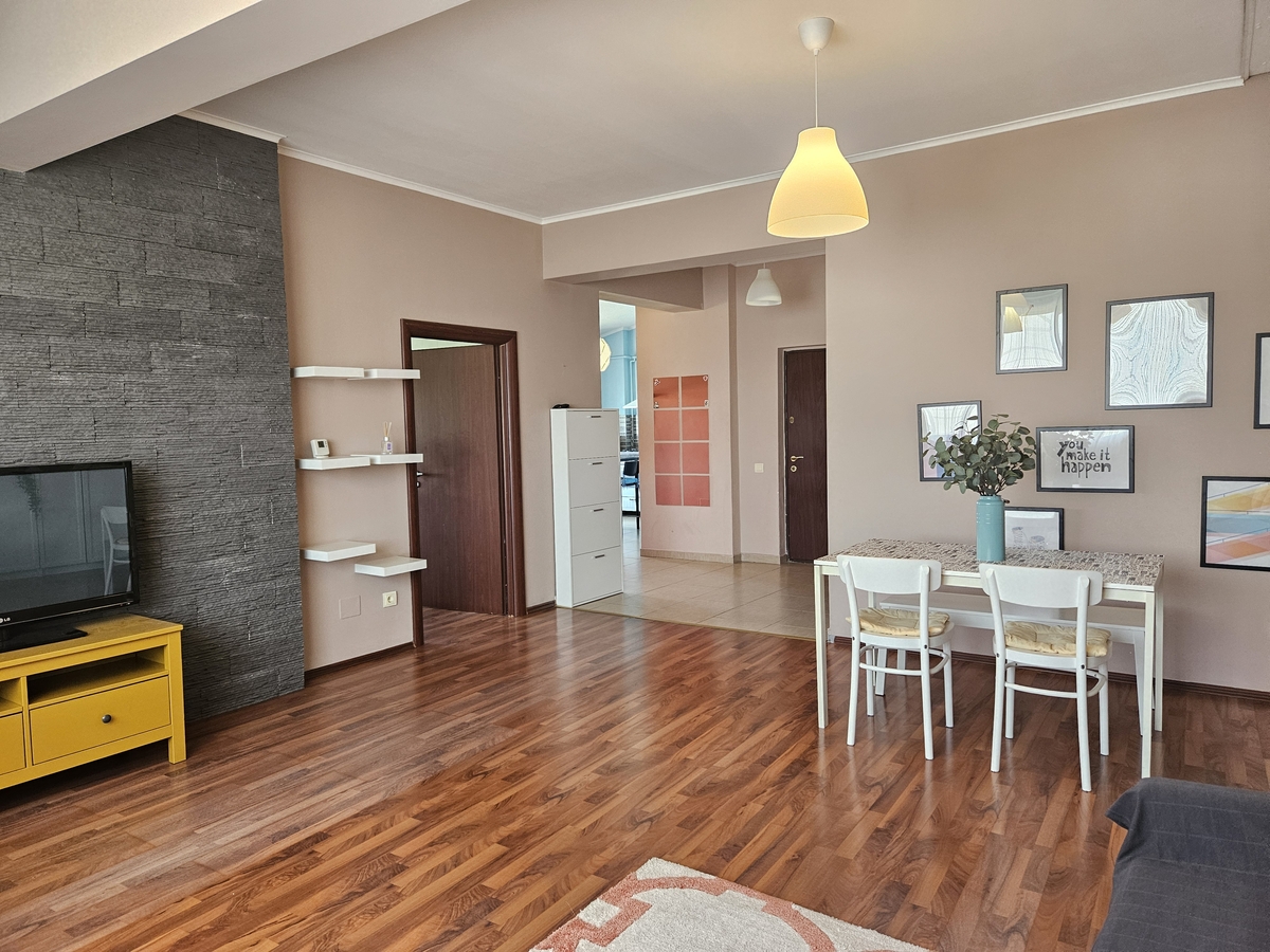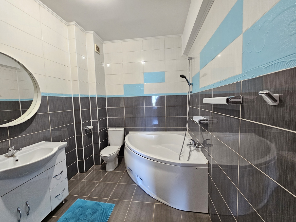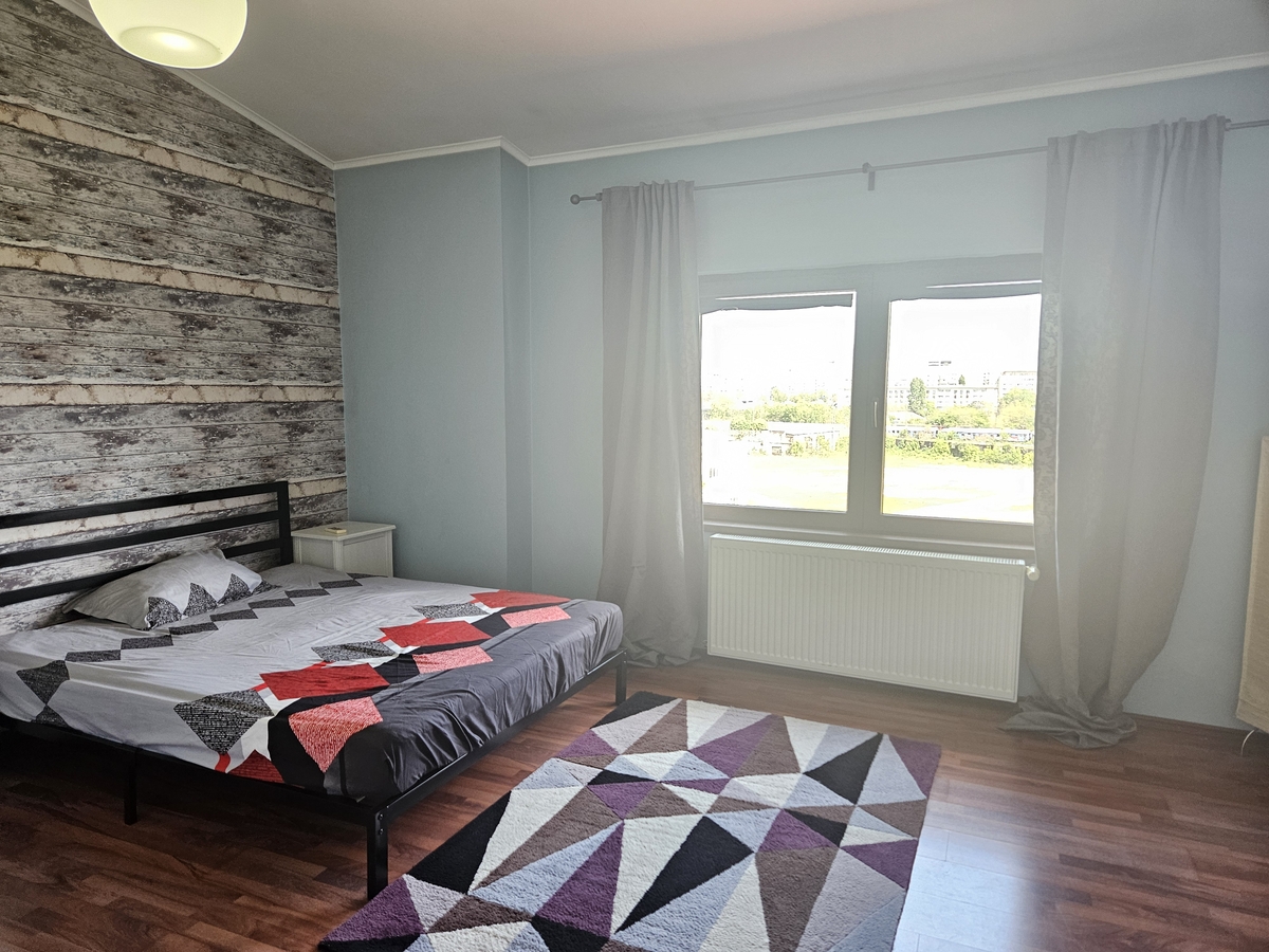 Apartamentul este situat intr-un bloc construit in anul 2011, la etajul 5, cu lift. Este complet mobilat si utilat (TV, AC, centrala, frigider, masina de spalat, aragaz, cuptor, cuptor cu microunde).