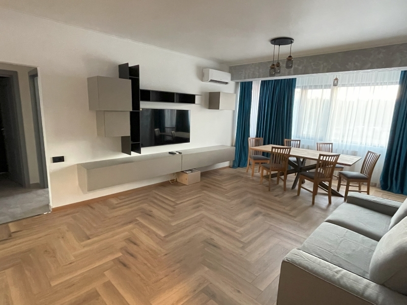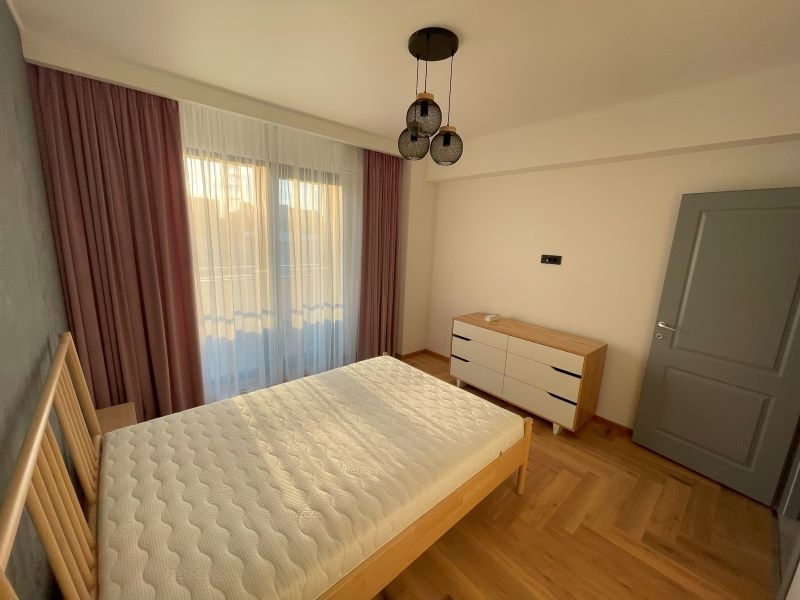 Dispune de living spatios si luminos, bucatarie inchisa complet echipata (inclusiv masina de spalat vase), un dormitor, o baie. AC Hitachi, TV Sony, finisaje si mobilier premium (Rovere, Ikea, Delta Design, Grohe, Bosch) masina de spalat rufe cu uscator. Este inclus 1 loc de parcare auto in complex – loc exterior. Nu se accepta animale de companie. Se solicita 1 luna avans si 1 luna garantie.