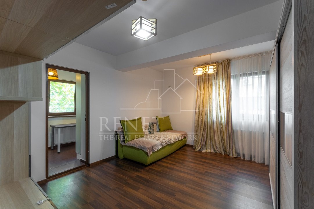 Este compus din doua camere, se inchiriaza mobilat complet ( cu ce vedeti in fotografii, in plus se va cumpara si un pat in dormitor) si utilat complet ( masina de spalat rufe, frigider, plita pe gaze, cuptor electric) Daca nu aveti telvizor, se poate aduce unul.