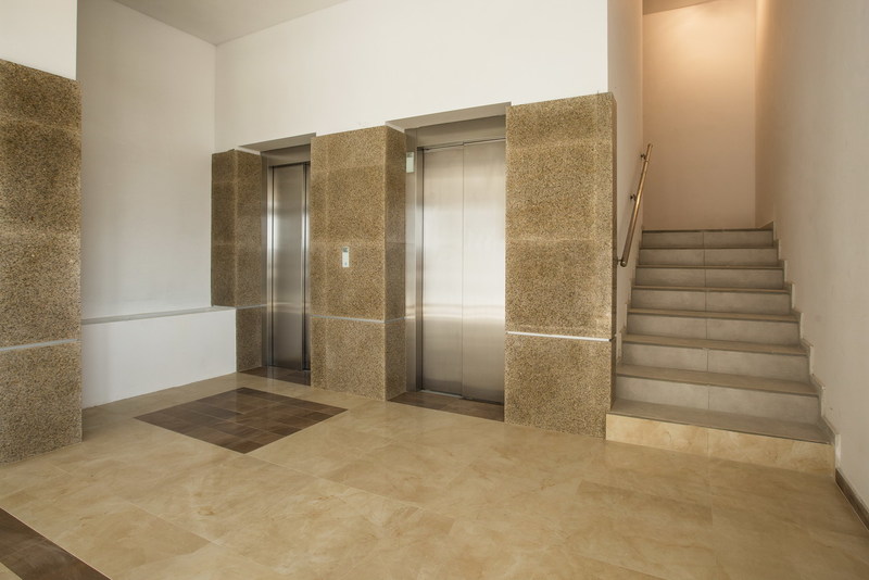 Glafuri interioare din granit, prize si intrerupatoare: Schneider; 2 lifturi marca Schindler.