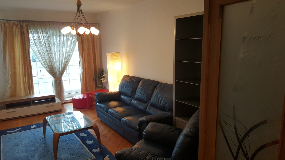 Unirii, Biblioteca Nationala proprietar inchiriez ap. 2 camere, et. 1/8, mobilat si utilat complet, canapele piele, parchet masiv, terasa 10 mp, paza permanenta, 3 min metrou P-ta Unirii,