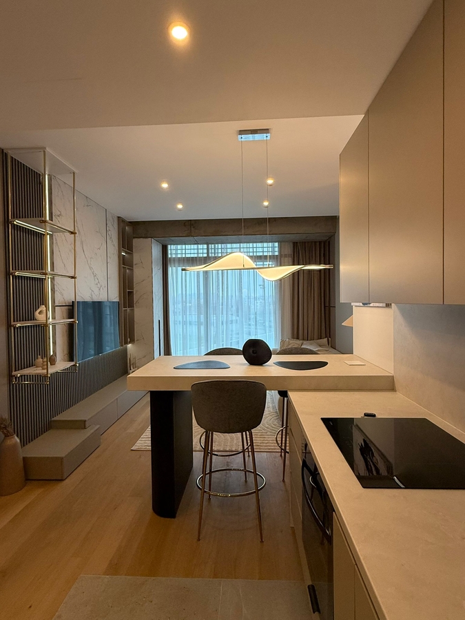 Imobilul are Centrala cu Incalzire in Pardoseala, Masina de Spalat Vase, Uscator, Aer Conditionat pe chillere (ca la Mall), TV Smart, Mobilat si Utilat Tot Nou.