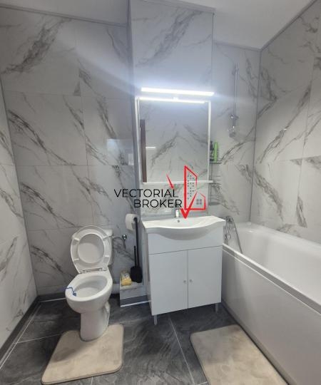 Vectorial Broker va prezinta un apartament de 2 camere in Calea Vitan, reper Stadionul Olimpia, confort 1 decomandat, avand suprafata de 58 mp, cu o baie si un balcon. Locuinta este situata la etajul 9, intr-un imobil tip de 10 etaje, construit in anul 1979, avand 4 apartamente pe palier. Apartamentul a fost renovat integral, este inchiriat pentru prima data si are urmatoarele finisaje: calorifere: otel; ferestre: pvc; incalzire: termoficare; pereti: faianta, lavabil; podele: parchet, gresie; usa intrare: metal si este pretabil pentru locuinta. De asemenea mobila este noua, dar si electrocasnicele: frigider, plita pe gaz, cuptor electric, masina de spalat vase, cat si aerul conditionat. Recomandam aceasta proprietate persoanelor active pentru care o locuinta in apropiere de mijloacele de transport in comun, statie de metrou, centre comerciale, supermarketuri, piete agroalimentare si parcuri, reprezinta un factor de decizie. Nu sunt acceptate animalele de companie si este de preferat un cuplu care isi doreste confort si liniste, vederea apartamentului fiind pe spatele blocului. Pretul este usor negociabil.