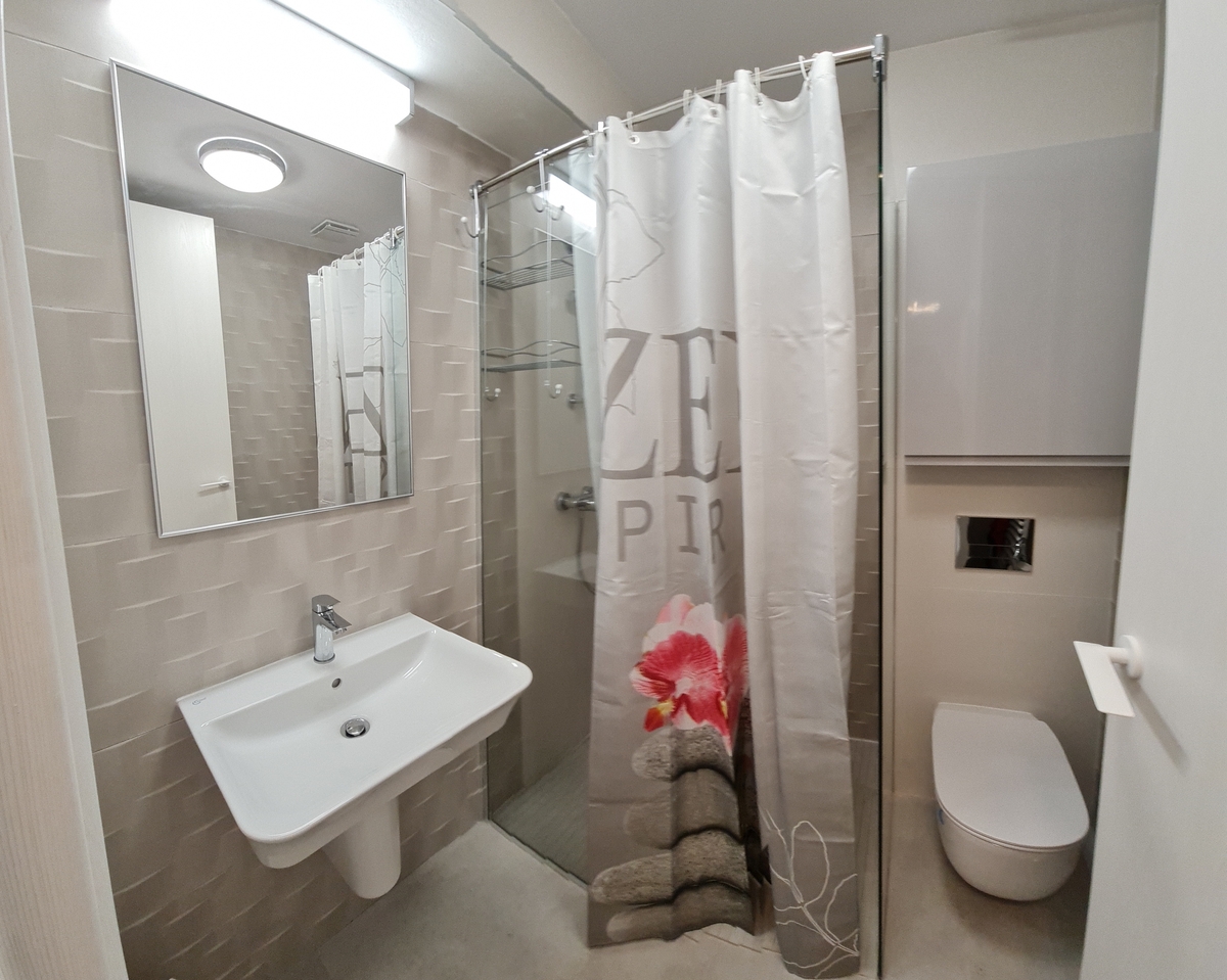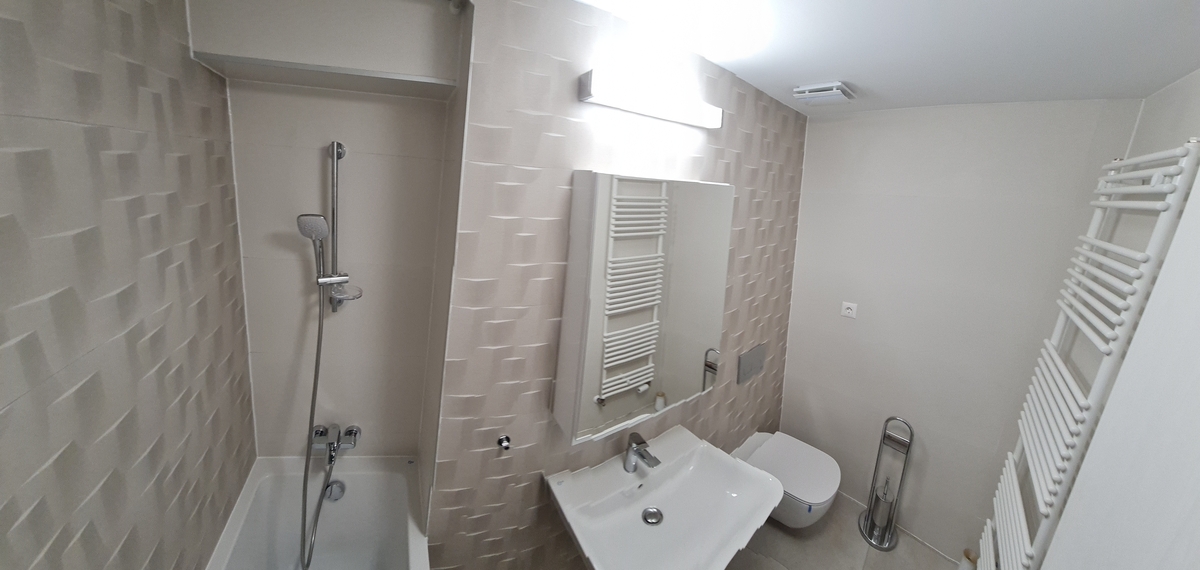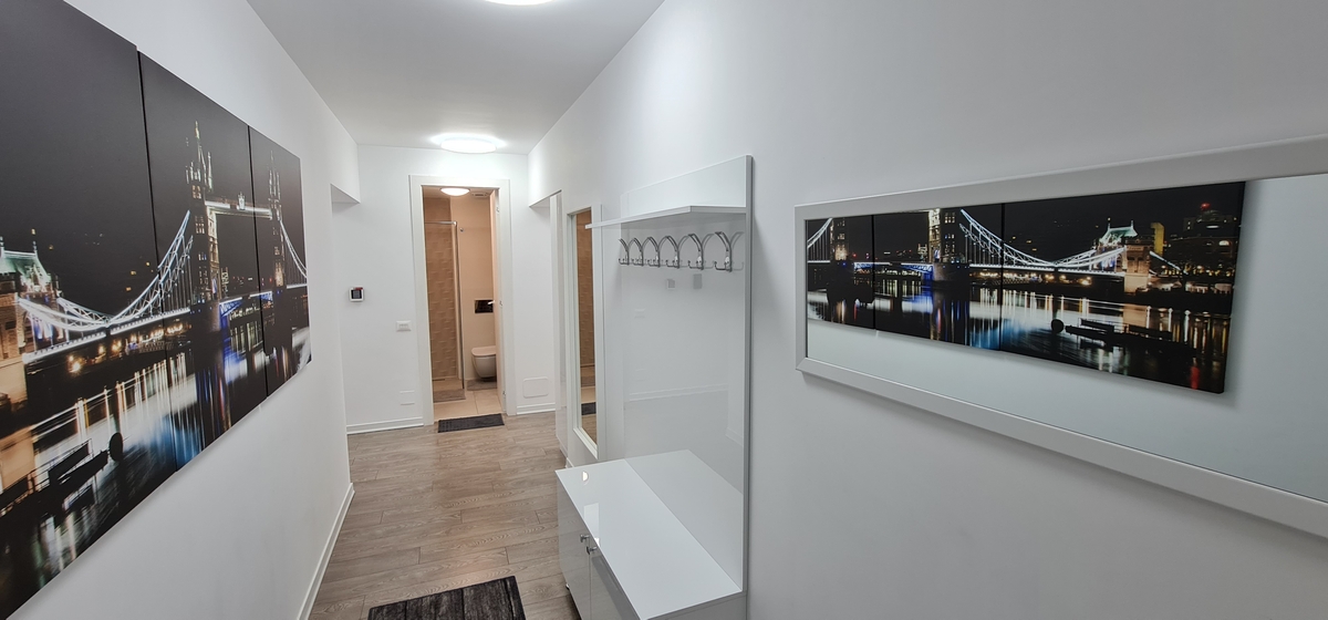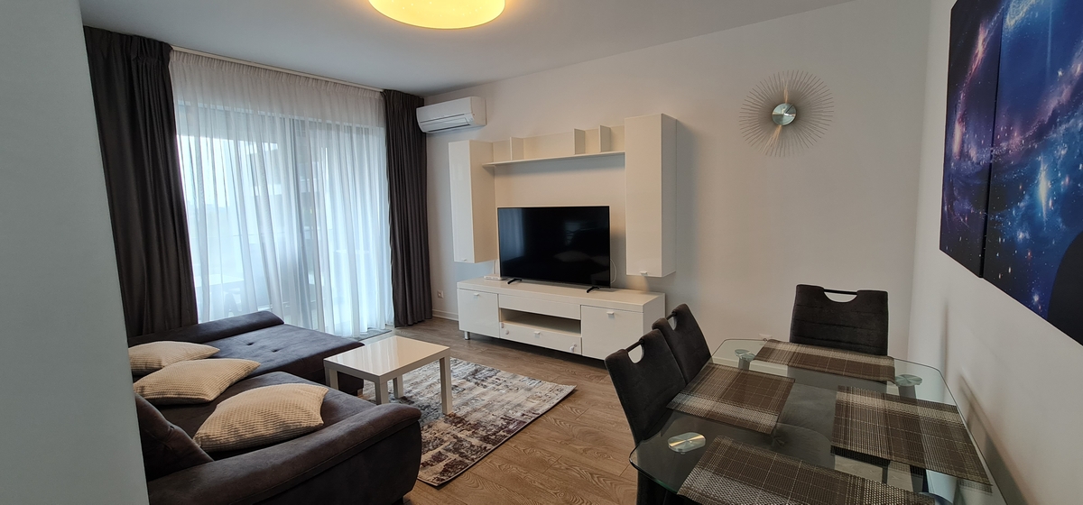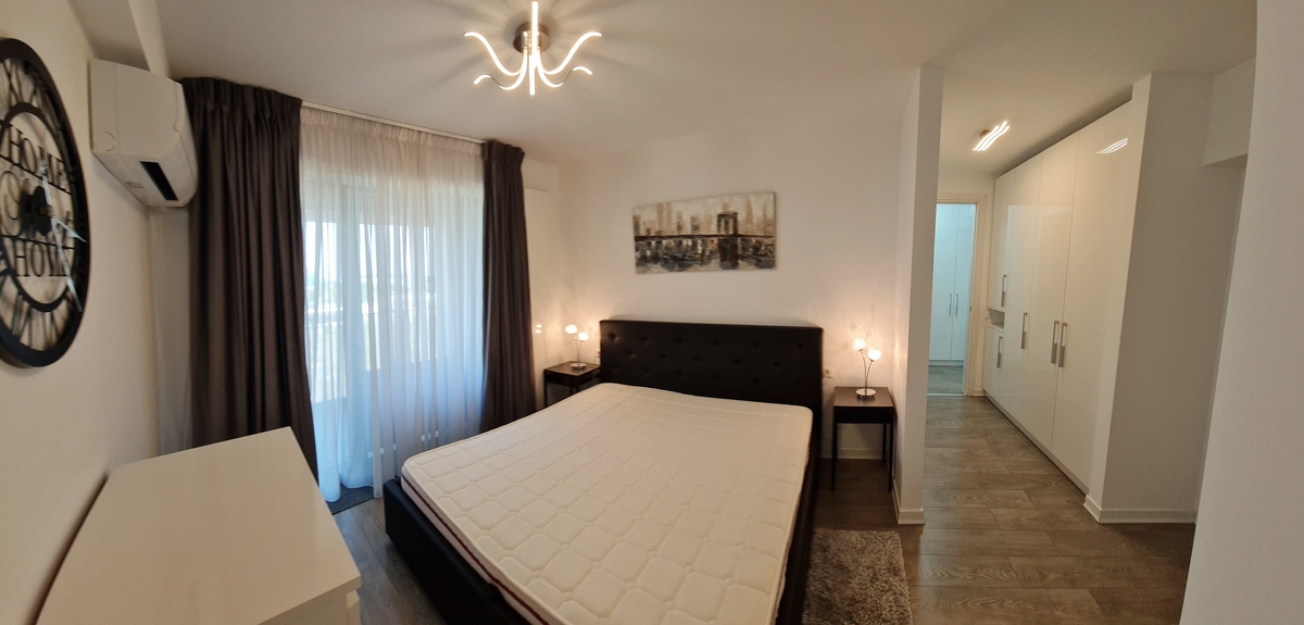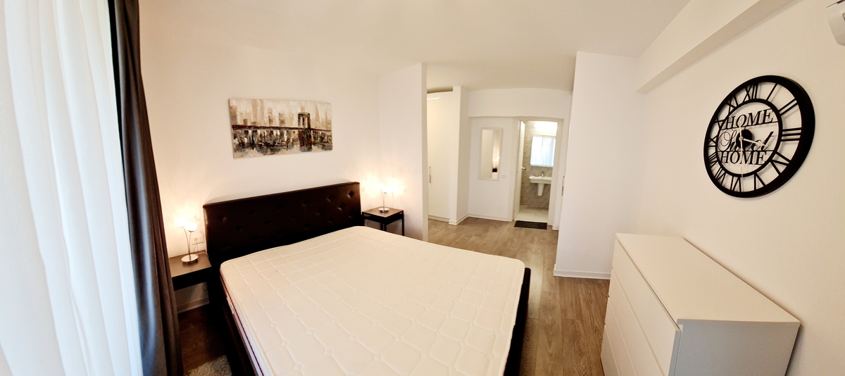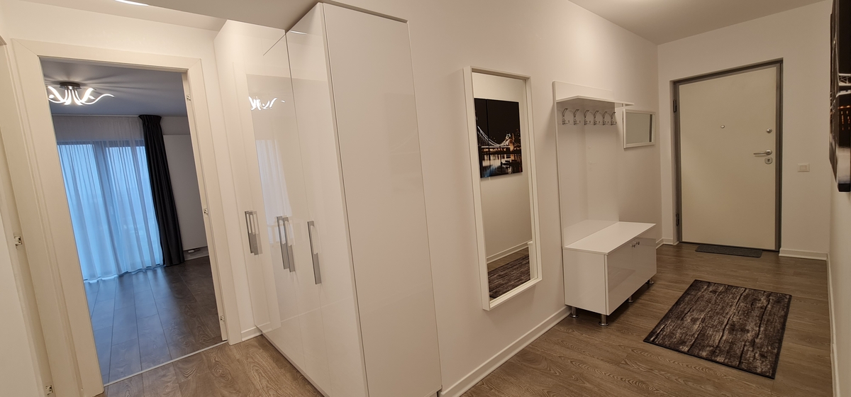 Apartamentul dispune de numeroase spatii depozitare atat pe hol cat si in dormitoare. Patul are lada depozitare si este de 180/ 200 cm. Canapeaua din living este extensibila si are lada depozitare.
