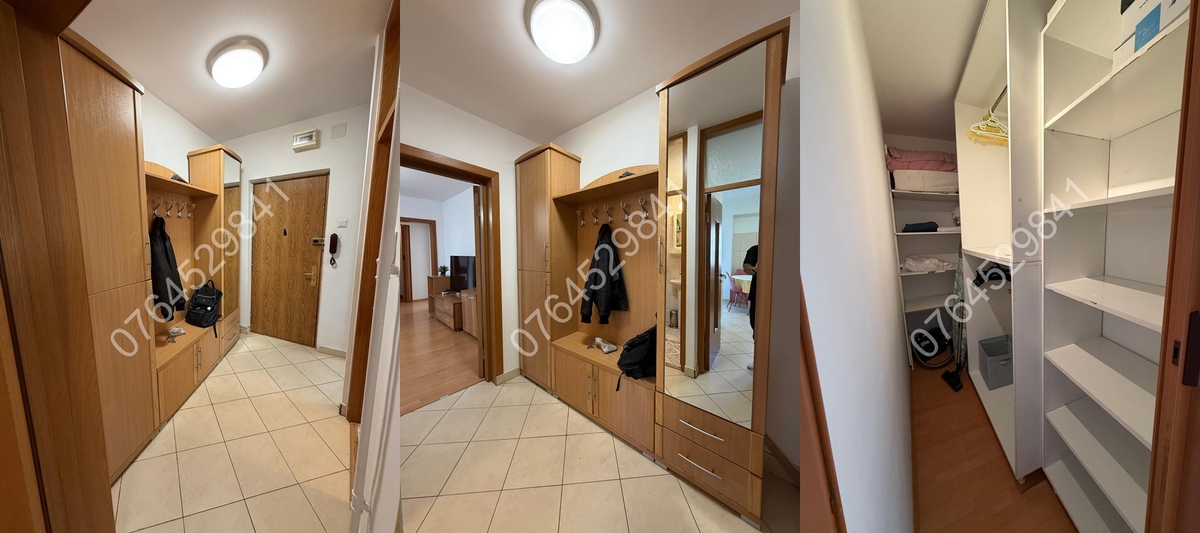 2 balcoane inchise in temopan, 2 bai (o baie cu cada+o baie de serviciu), boiler electric Ariston, aer conditionat Beko, televizor smart Samsung Qled,canapea extensibila tip coltar in living, pat matrimonial (160/200)+zona birou work from home in dormitorul 1, pat matrimonial (140/200) in dormitorul 2, dressing walk-in pe hol, spatii depozitare (dulap+cuier pe hol), plita pe gaz Arctic+cuptor electric Arctic+hota Beko+masina de spalat vase Arctic incorporate, cuptor cu microunde, cafetiera, combina frigorifica Whirlpool, masina de spalat rufe Indesit, zona dining in bucatarie, aspirator.