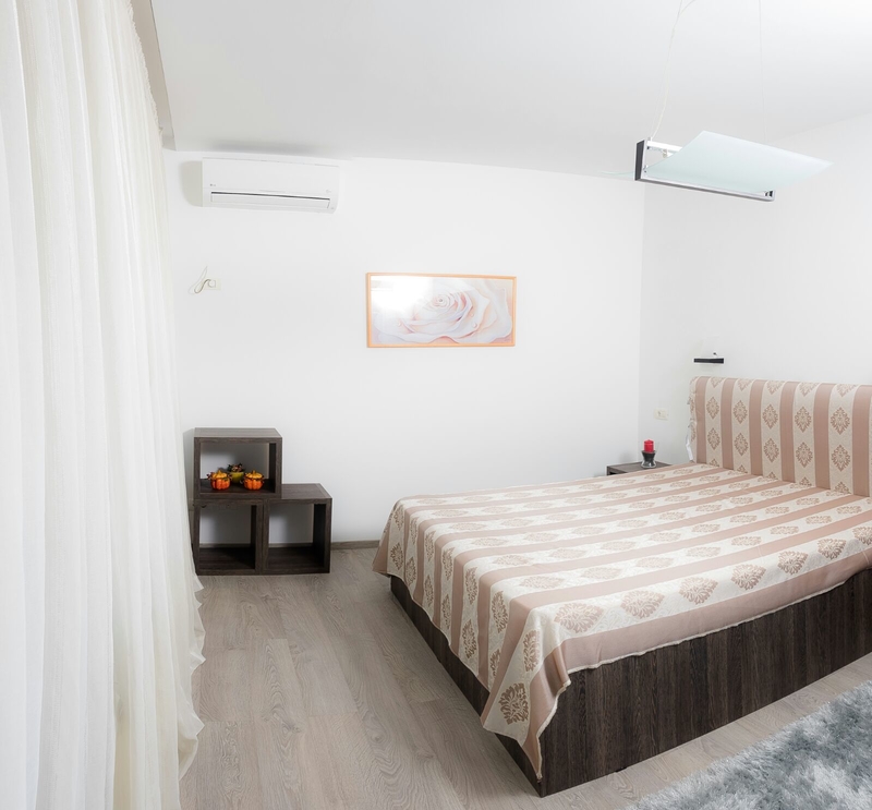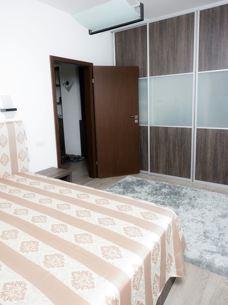 Are urmatoarea configuratie: living cu bucatarie deschisa, 2 dormitoare (dintre care unul matrimonial), 2 bai, hol.Este finisat, mobilat si utilat clasa lux. Dispune de toate facilitatile: centrala proprie, aer conditionat, mobilier personalizat.