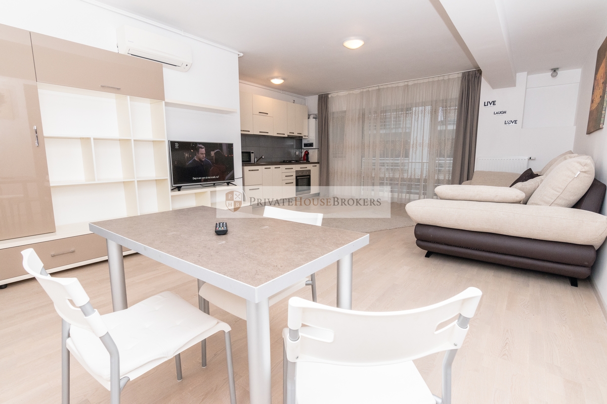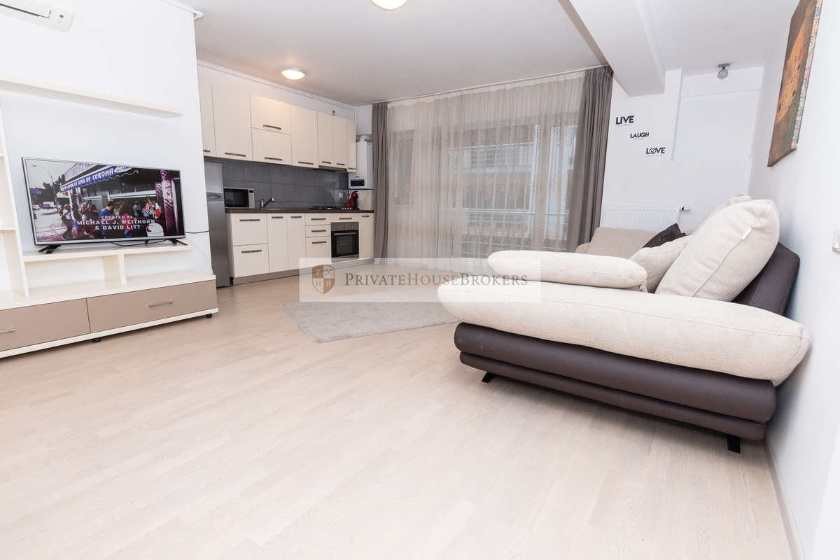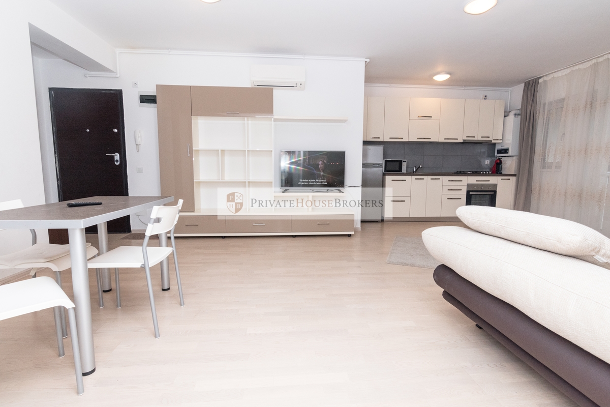 Apartamentul este situat la etajul 1 din 4, are 3 camere, living si 2 dormitoare ambele cu pat matrimonial, 2 bai cada si dus, este semidecomandat si are o suprafata de 80 mp utili interior + 16 mp terasa. Apartamentul este mobilat si utilat complet modern, la prima inchiriere, dispune de centrala proprie de apartament, aer conditionat, televizor, paza. In pret este inclus si contractul inregistrat la Administratia Financiara.