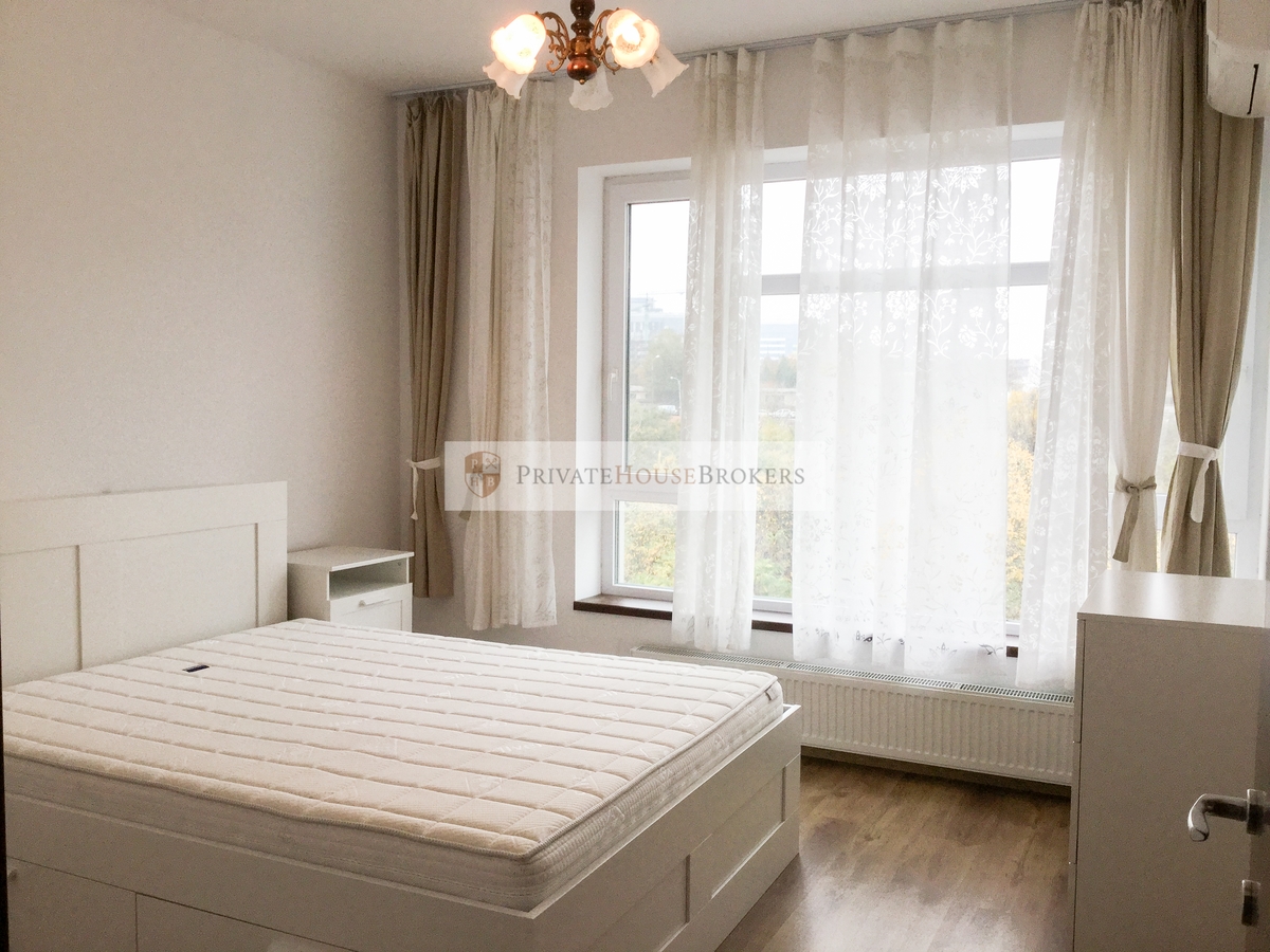 Apartamentul este situat la etajul 3 din 7, are 3 camere, living si 2 dormitoare, dormitorul mare cu pat matrimonial, dormitorul mic cu canapea extensibila, 2 bai cada si cabina dus, balcon, este semidecomandat si are o suprafata totala de 90 mp, respectiv 86 mp suprafata utila. Apartamentul este mobilat si utilat complet modern, la prima inchiriere, dispune de centrala proprie de apartament, aer conditionat, televizor, paza 24/24h. In pret este inclus si contractul inregistrat la Administratia Financiara.