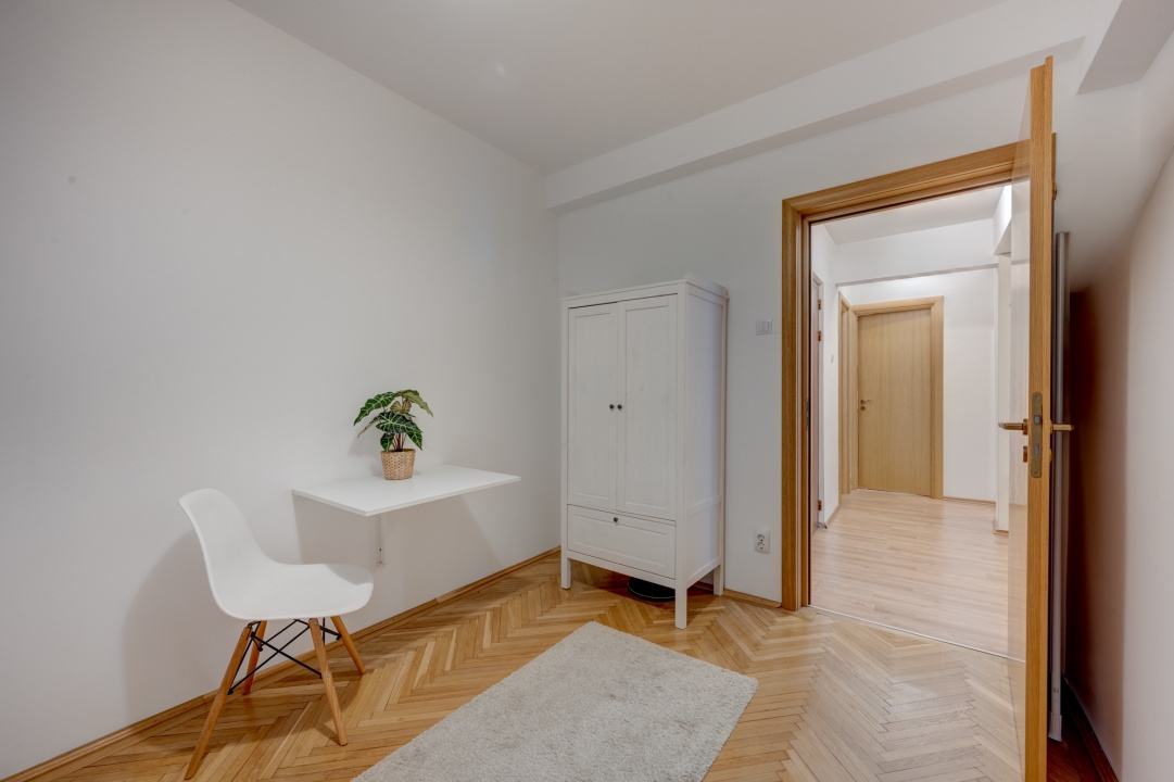 The apartment is fully furnished and fully equipped, ready for immediate move-in: dishwasher, washing machine and dryer – true comfort for a modern lifestyle. The space is bright, modernly arranged, with an airy and welcoming atmosphere. The windows facing the back of the building ensure peace and privacy, while the balcony nicely complements the relaxation area – the perfect spot for your morning coffee or a moment to unwind after a busy day.