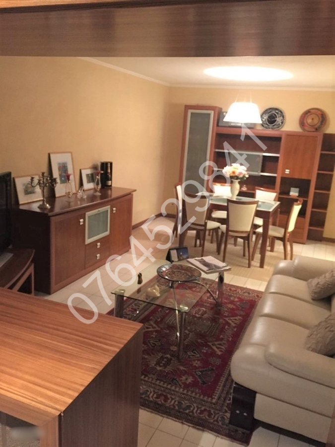 2 Balcoane (1 balcon inchis in termopan si inclus in living + 1 balcon deschis cu acces din dormitorul2), 2 bai (1 baie matrimoniala pt. dormitorul 1 + 1 baie de serviciu), aer conditionat, televizor smart Qled LG, canapea+zona dining in living, pat matrimonial+dressing generos in dormitorul 1, canapea extensibila+dressing generos in dormitorul 2, spatii depozitare, plita pe gaz+cuptor electric incorporate, hota, combina frigorifica, masina de spalat rufe.