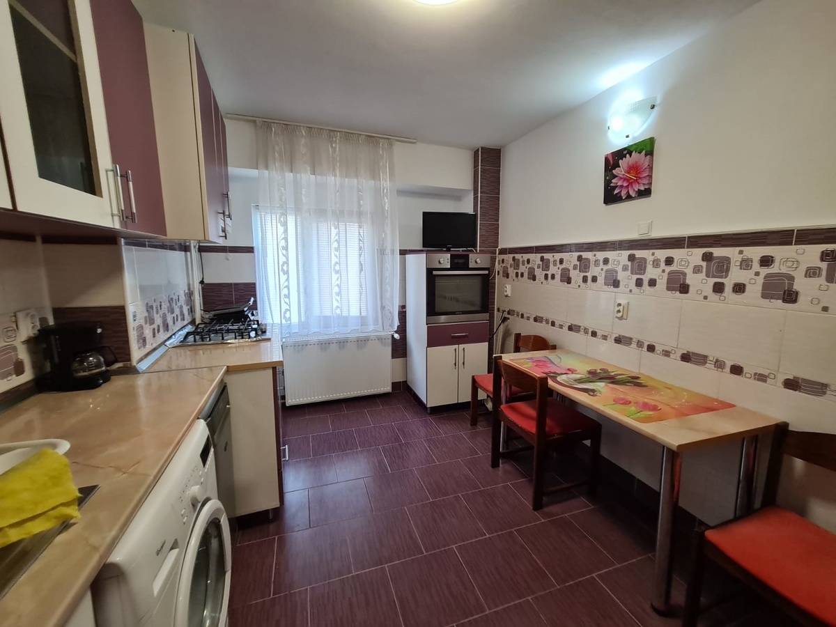 Este mobilat si utilat complet. Are usa metalica, gresie, faianta, parchet, TV in sufragerie si in bucatarie, aer conditionat.