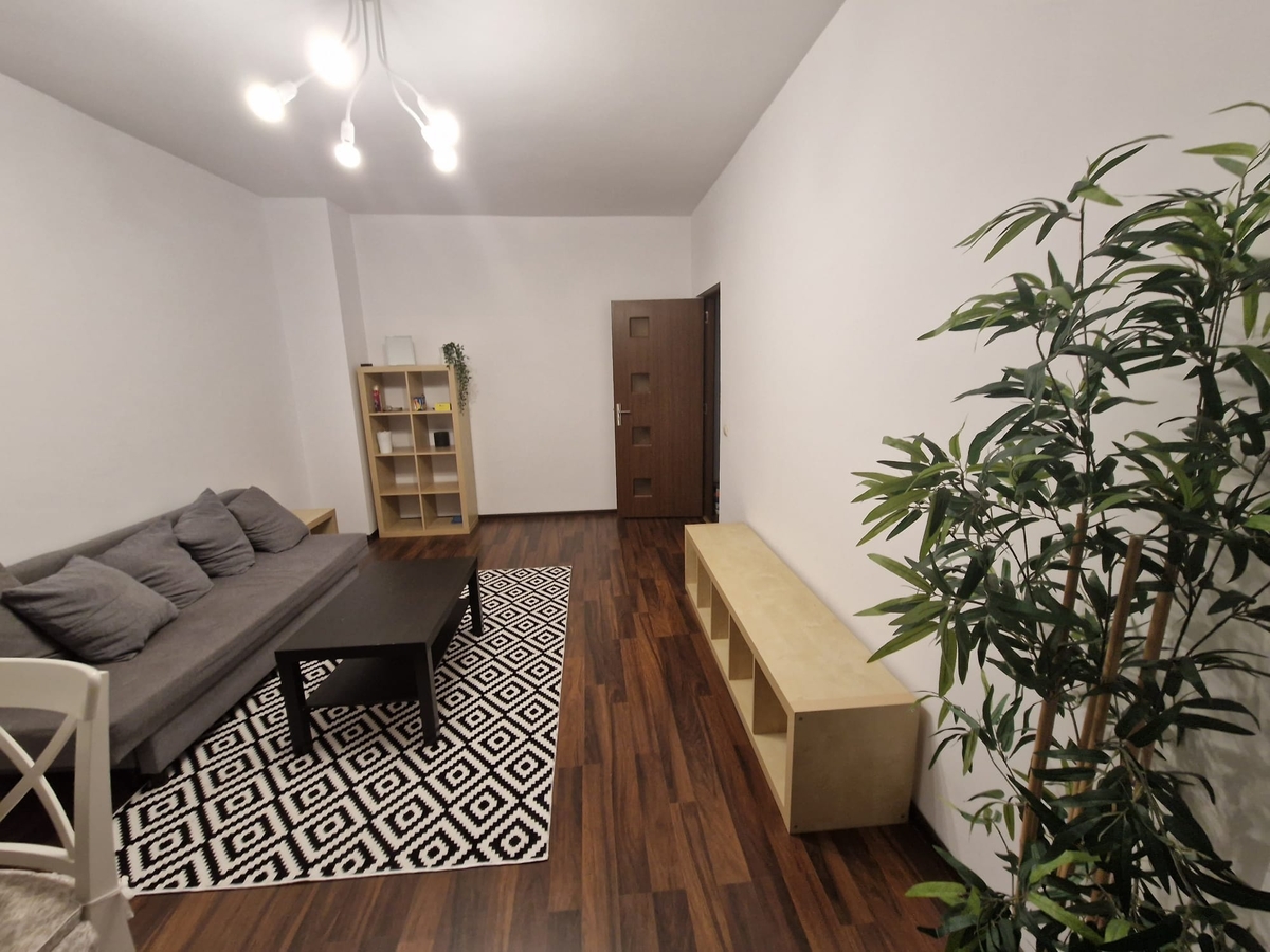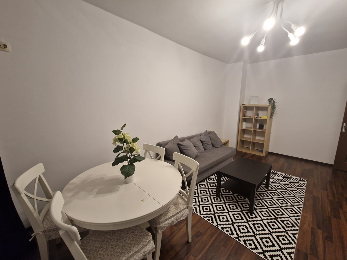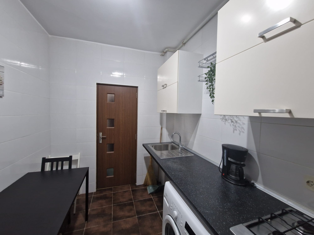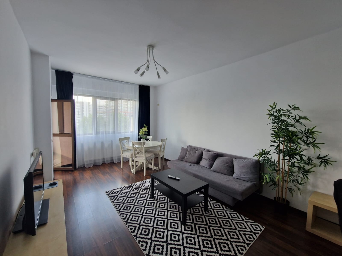 Apartamentul este mobilat si utilat, living spatios si luminos (tv, canapea extensibila), bucatarie mobilata si utilata (frigider, aragaz, cafetiera, centrala termica, masina de spalat), dormitor pat matrimonial, dormitor cu birou si canapea extensibila.
