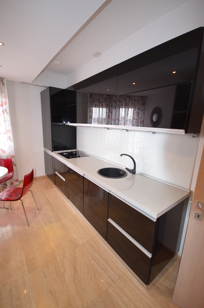 - bucatarie prevazuta cu masina de spalat vase, cuptor cu microunde, hota, plita, cuptor electric (marca Gorenje).