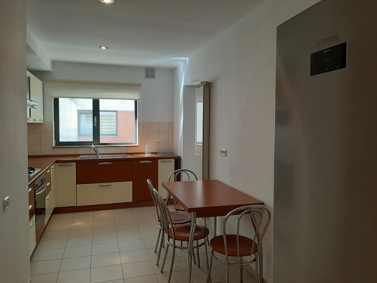 Livingul are 56 mp, bucataria este spatioasa, iar dormitoarele au intre 14, mp, 18 mp si 24 mp. Apartamentul are 3 bai. Apartamentul este semi-mobilat (bucatarie mobilata-utilata, electrocasnice: plita, cuptor electric frigider nou, masina automata..