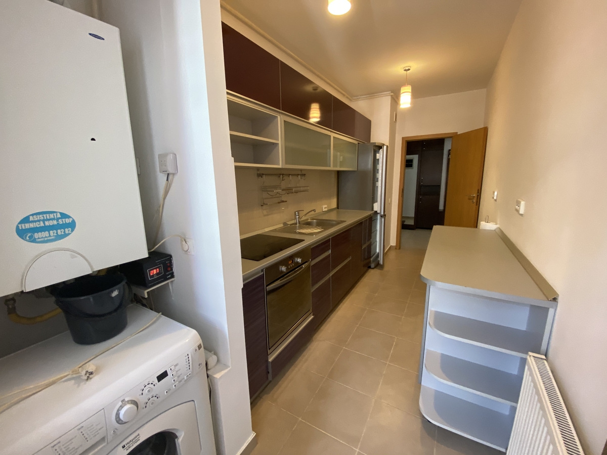 Apartamentul este utilat/mobilat complet: masina de spalat rufe, masina de spalat vase, aragaz si plita electrice, centrala proprie, aer conditionat centralizat in toate camerele.