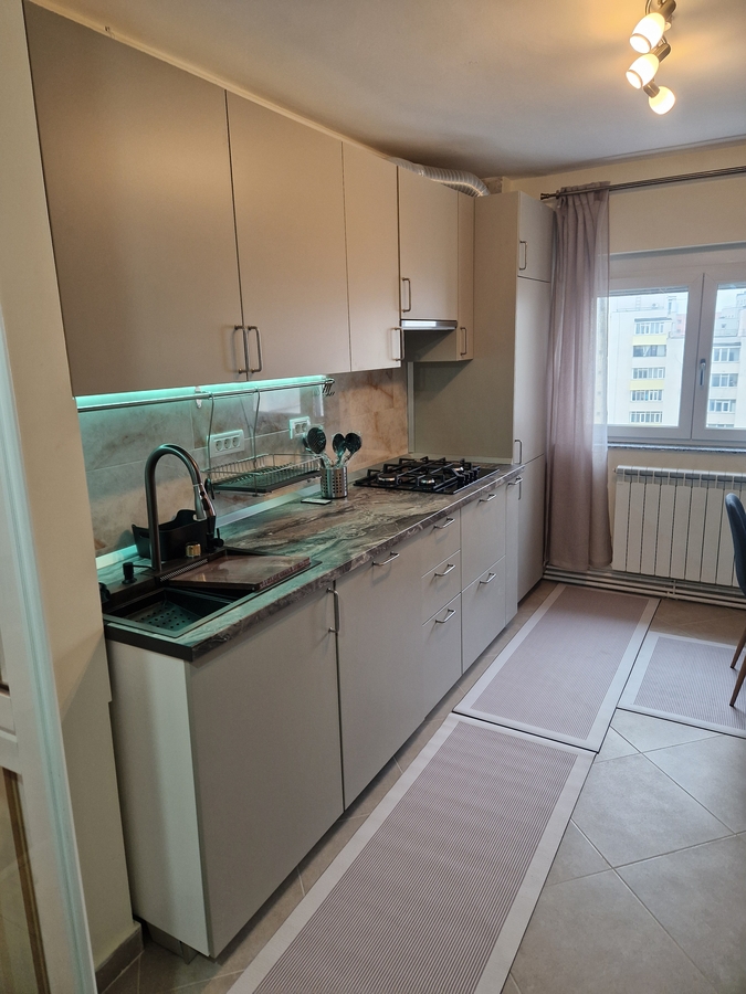 Optiuni interior: Apometre Centrala Internet Repartitoare 2 gr. sanitare Aragaz Frigider Liber Televizor Aer conditionat Balcon Inst. electrice noi Masina de spalat Termopan Cablu Inst. sanitare noi Renovat Usa metalica