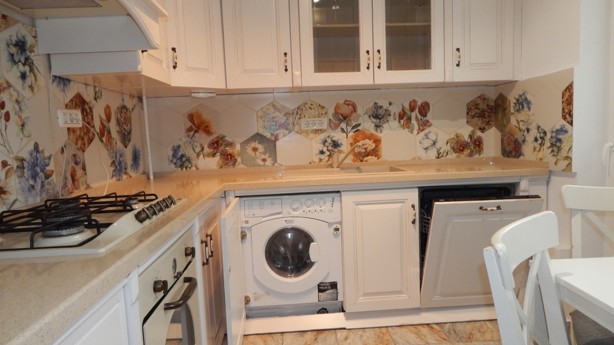 Bucatarie spatioasa, complet mobilata si utilata cu electrocasnice (cuptor, plita, hota, combina frigorifica, masina de spalat rufe si vase). Mobilierul este realizat pe comanda pentru a maximiza spatiul si functionalitatea. Din bucatarie se poate accesa un balcon.