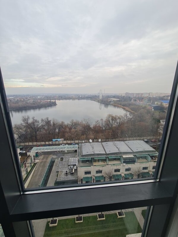 Penthouse deosebit situat in complexul rezidential Emerald din zona lacul Tei. Amplasat la etajele 9 si 10, penthouse-ul are vedere mixta, atat catre lac cat si spre Barbu Vacarescu. Este compus din 5 camere, 3 grupuri sanitare, camera uscator, scara interioara, avand suprafata de 306 mp, terasa 60 mp, balcon, 2 x loc parcare subteran. Este renovat, dispune de incalzire pardoseala, a/c tubulatura, terasa deck, gresie, faianta, parchet stratificat, usa metalica, alarma, controlul temperaturii se face individual pe fiecare camera. Bucataria este mobilata si partial utilata, baile sunt deasemenea utilate.