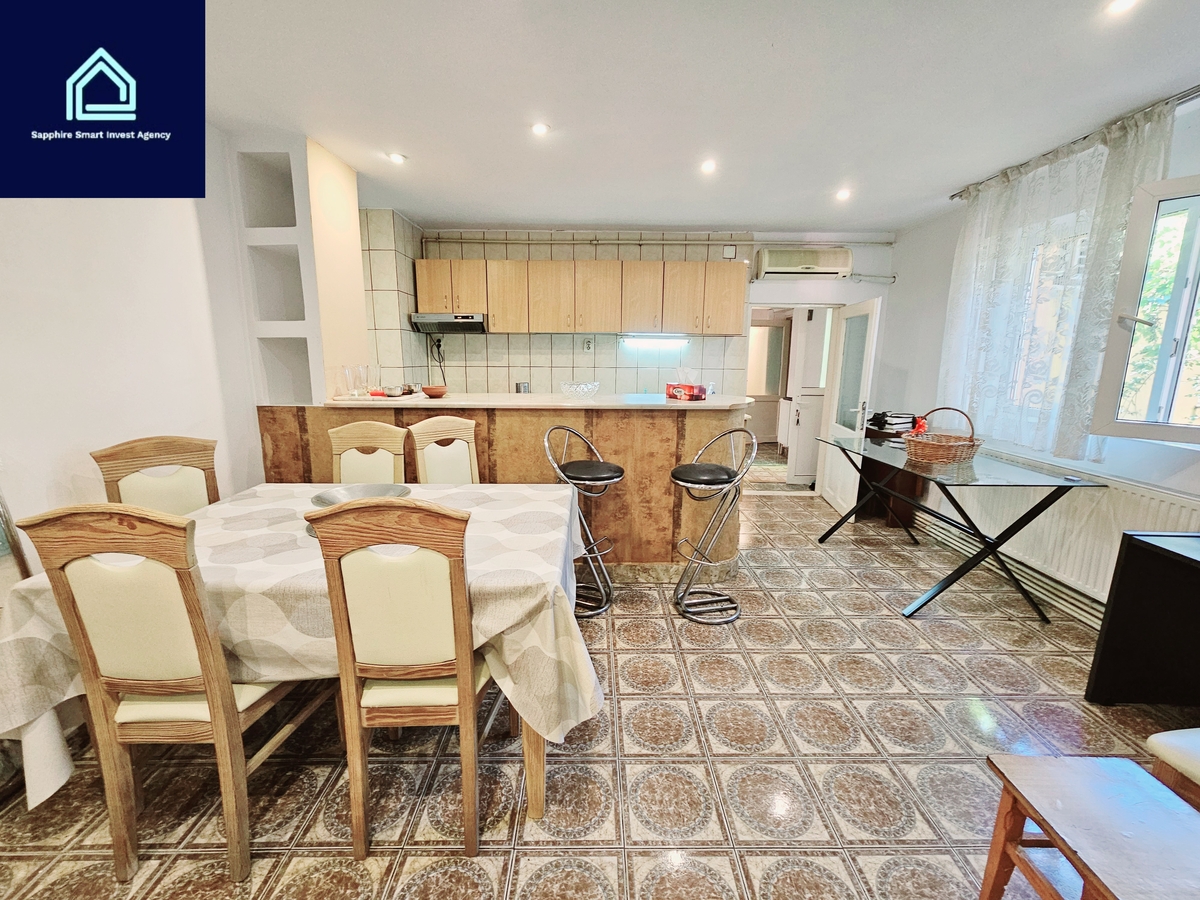 Compartimentarea este urmatoarea: un living cu o bucatarie open space, 3 dormitoare, 2 bucatarii, 1 baie, 1 wc de serviciu, 2 holuri, pivnita si 2 cai de acces in imobil, pot trimite schita pe whatsapp.
