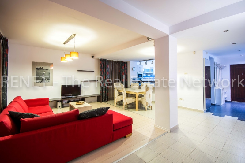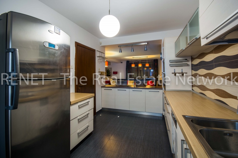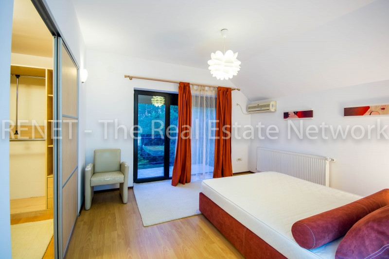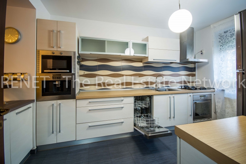 Mobilierul este Neoset, facut pe comanda, toata aparatura din casa este Whirlpool, de cea mai buna calitate, locatia dispune de masina de spalat vase, masina de spalat rufe, uscator, cuptor cu microunde, cuptor electric, plita pe gaze, hota cu filtru de carbon, espressor incorporat (unicat), 5 aparate cu aer conditionat 6th sense, tamplaria este protejata integral de rulouri de aluminiu ( cele mari din dormitorul matrimonial si iesirea pe terasa, sunt actionate prin telecomanda), toate becurile din casa sunt economice si nu in ultimult rand, centrala termica care asigura incalzirea casei, este controlata de un cronotermostat + termostate individuale la fiecare calorifer.