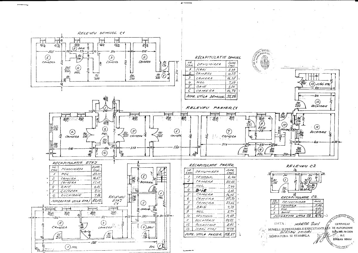 o Demisol cu suprafata utila de aproximativ 55mp : format din 3 camere, hol si grup sanitar. Utilizat ca si birouri, spatii tehnice, arhiva, zona de depozitare/servere.
