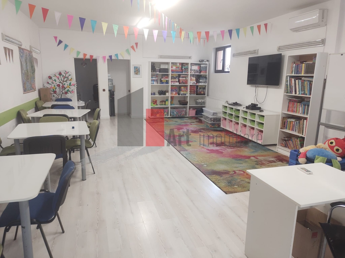 Cu o suprafata desfasurata de aproximativ 250mp, dispusa pe parter, etaj si mansarda, casa este pretabila pentru activitate economica - after school, gradinita, organizari de evenimente. Are 5 camere si 4 bai. In terasa interioara se poate amenaja un loc de servit masa.