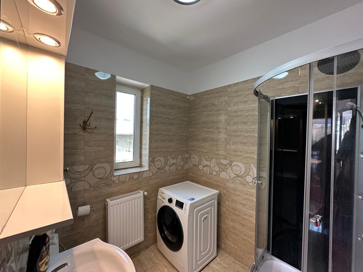 Casa 3 camere mobilata modern, parter + etaj 1, frigider, aragaz, masina de spalat, centrala proprie, aer conditionat, gresie, faianta, parchet, termopan, curte 90 mp, contract ANAF.