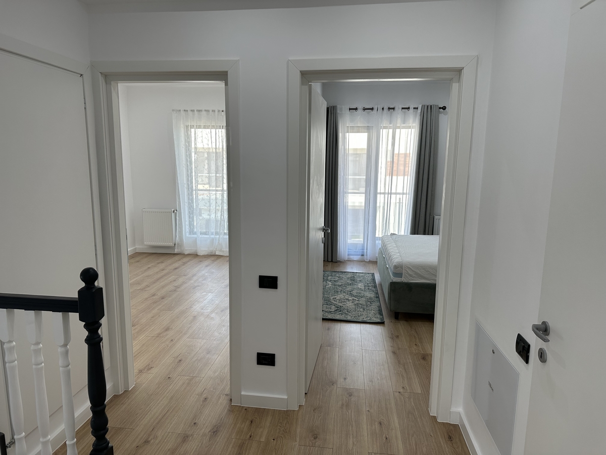 Duplex in zona Tunari, Complexul Paris Residence,P+1E, 4 camere,constructie 2021, Su-103 mp, teren 250 mp, avand toate utilitatile, casele sunt construite din caramida, termoizolate, la parter-living, bucatarie, baie, hol, terasa, iar la etaj-3 dormitoare, 2 gs, 2 balcoane, mansarda.