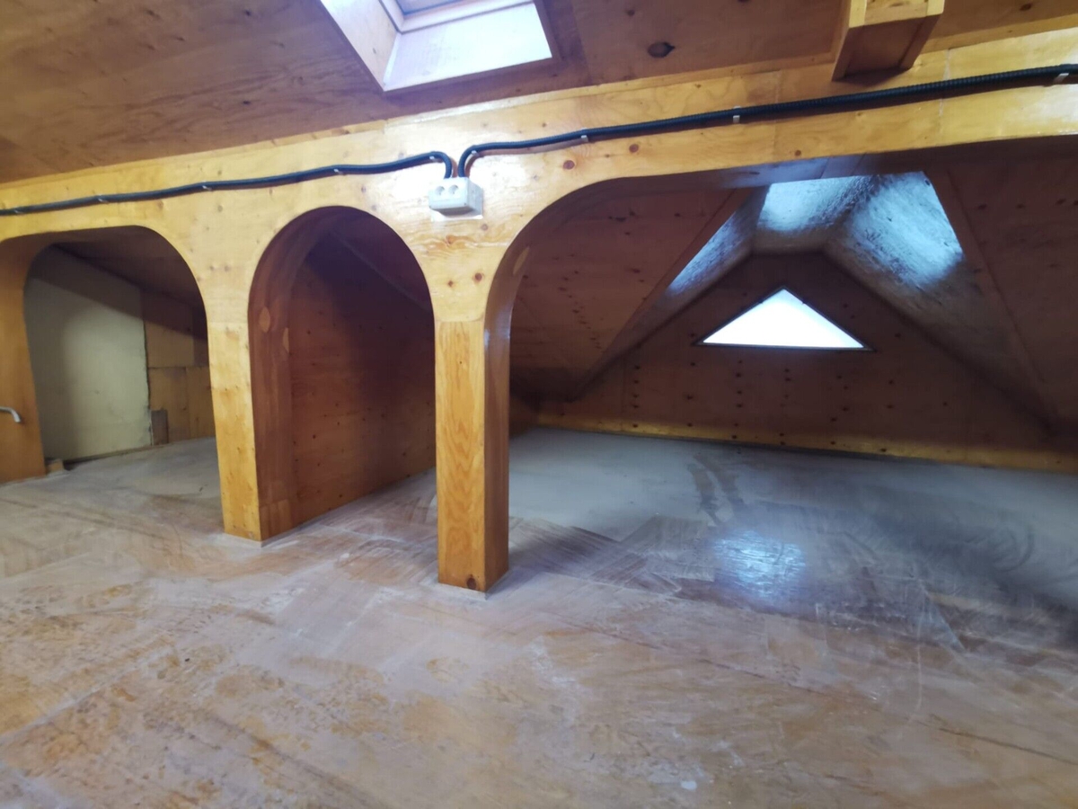 Mansarda - 110mp open space si 45mp cu inaltime redusa (spatiu de depozitare), baie cu cabina de dus, chicineta