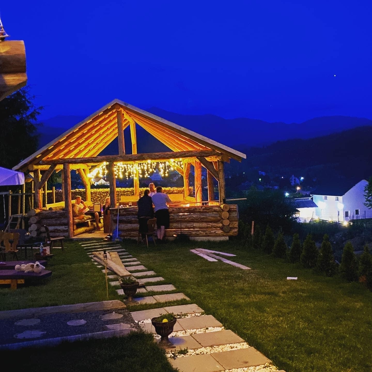 Curtea este amenajata, parcare pt 5-6 masini, este loc de joaca pentru copii, casuta de lemn pt copii, Foisor mare cu canapele de relaxare, gratar, fire pit ceaun, disc.