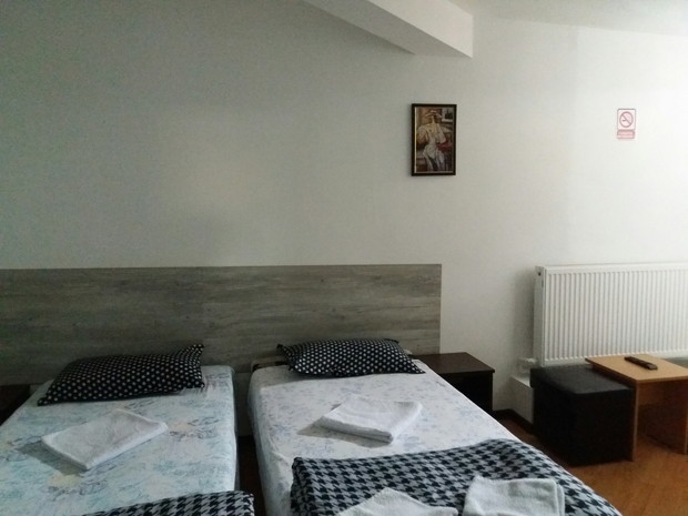 vila Duo Caffe ofera camere triple cu baie proprie, wi-fi, tv, frigider, 105 Lei/zi, camera dubla 110 Lei;