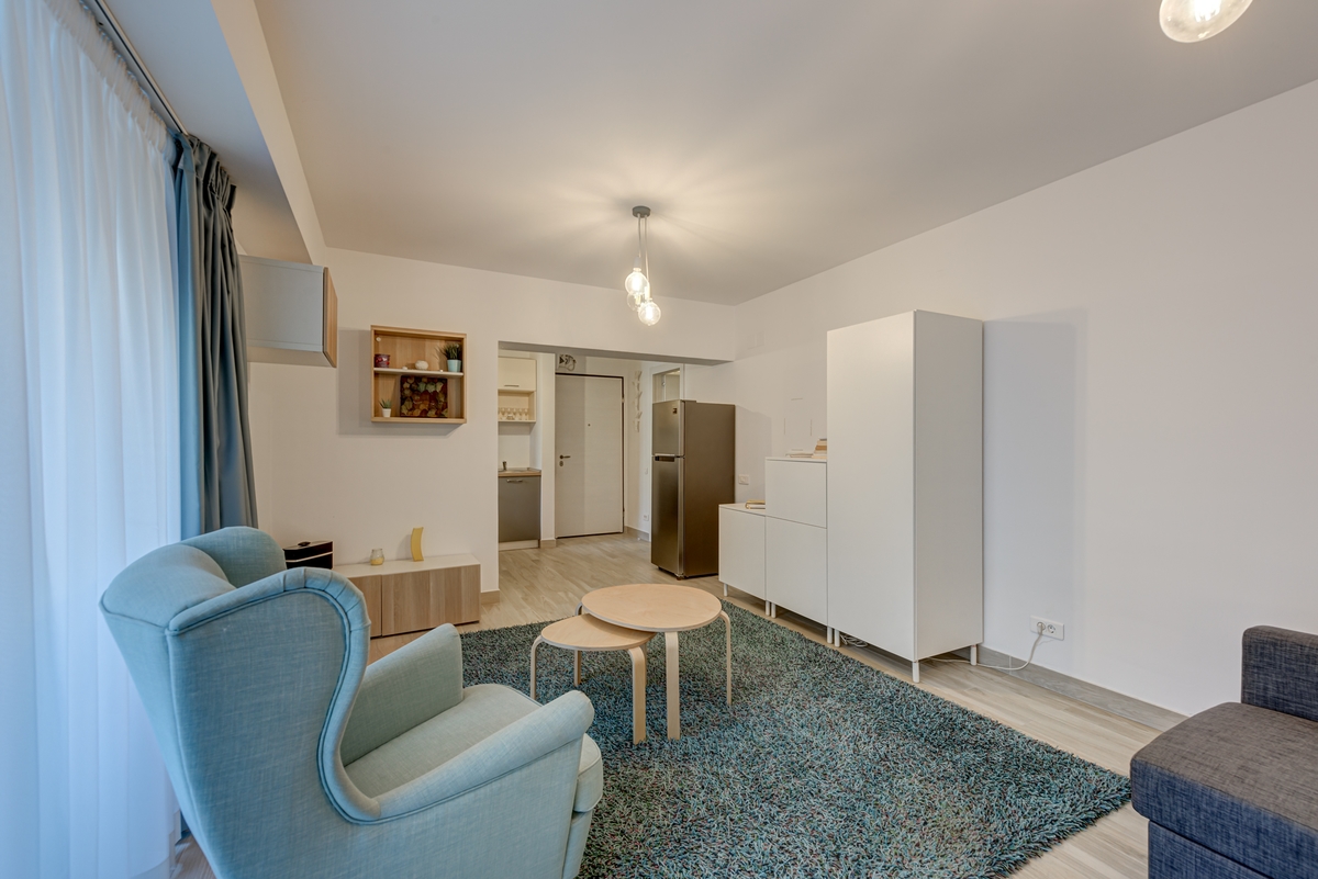 Camerele inalte de 270cm, designul placut, mobilierul nou, ferestrele generoase pentru cat mai multa lumina naturala sunt cateva din atuurile acestui studio.