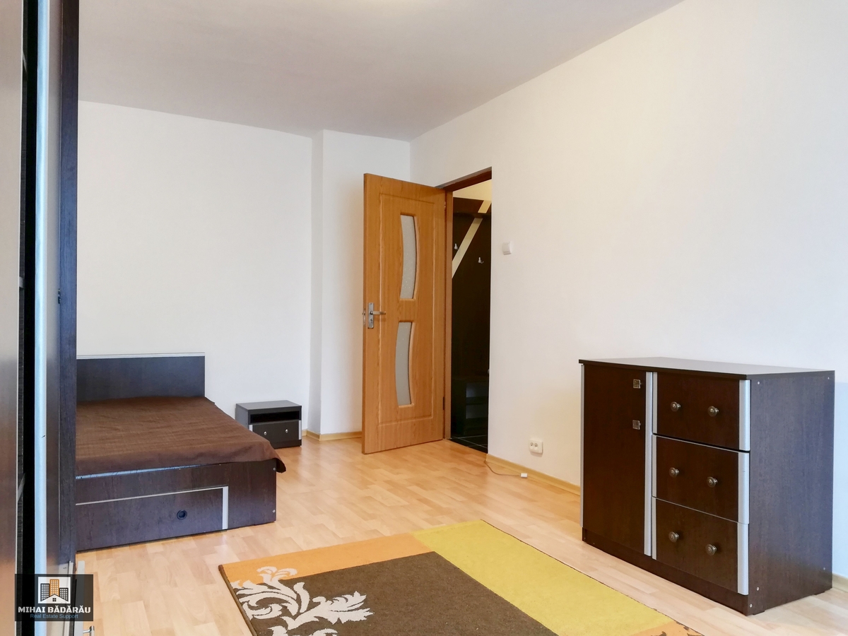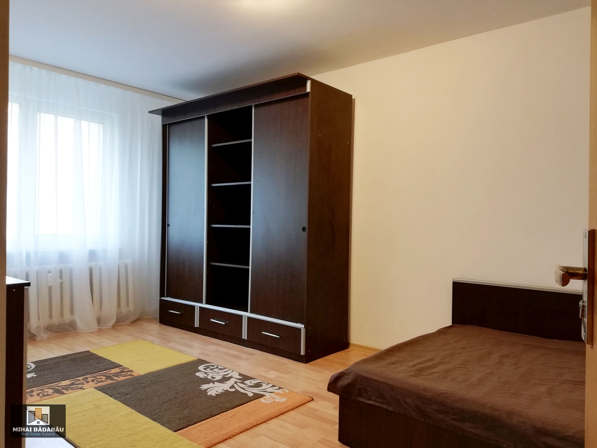 Se inchiriaza mobilata si utilata complet, fiind dotata cu: aragaz, frigider, masina de spalat rufe, mobilier de bucatarie, in camera pat pe colt, noptiera, dressig mare cu 2 usi, comoda TV cu sertare.