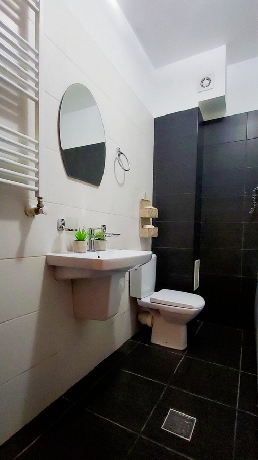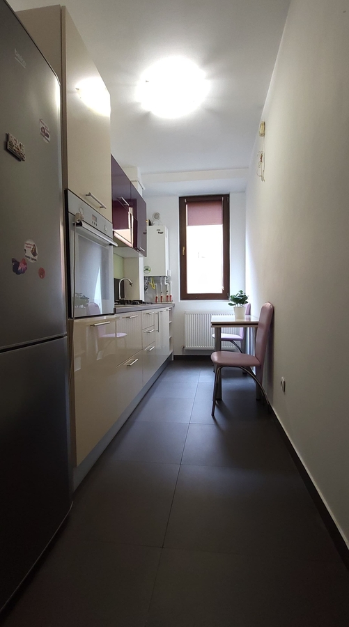 Proprietatea se afla intr-un imobil construit in anul 2013, cu regim redus de inaltime (P+3), iar garsoniera este amplasata la demisolul inalt, beneficiind de lumina naturala prin ferestre mari orientate catre o terasa tip englezeasca. Terasa/curtea proprie are o suprafata de 18 mp – ideala pentru relaxare sau amenajare personalizata.