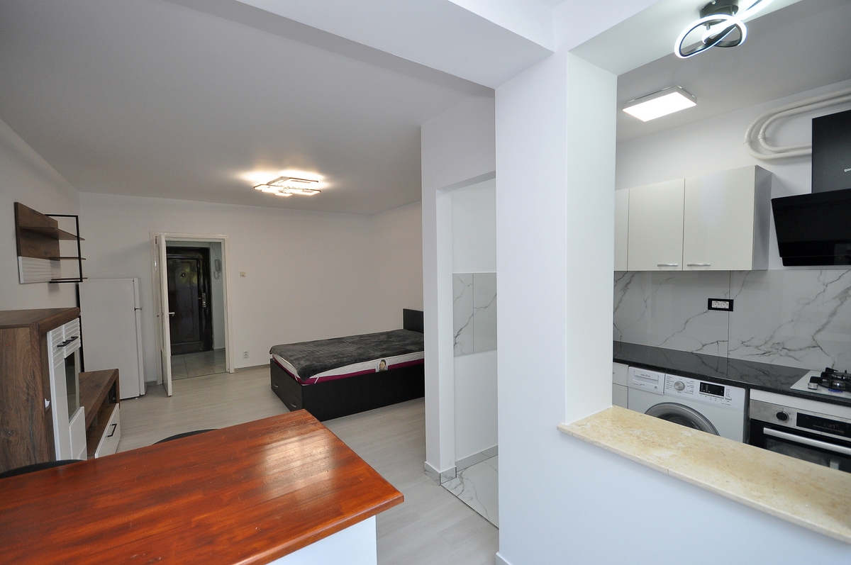 Va ofer spre inchiriere o garsoniera renovata si mobilata situata in zona Favorit foarte aproape de statia de metrou si de AFI Mall.