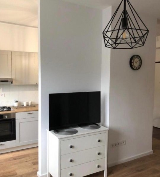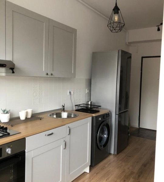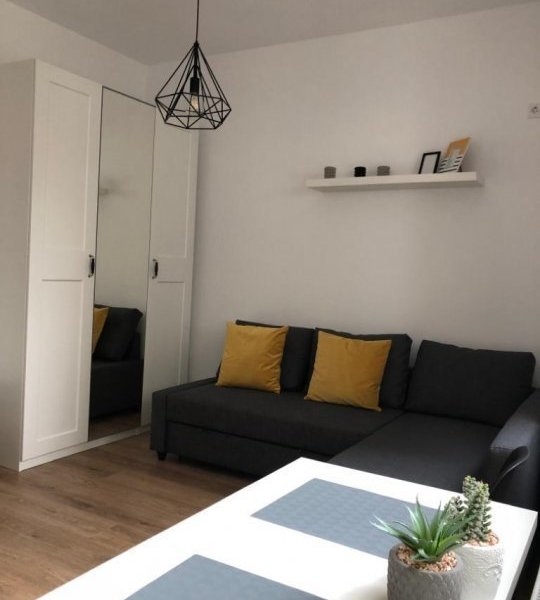 Ofer spre inchiriere garsoniera mobilata modern, utilata complet (frgider, plita, cuptor, masina de spalat), totul nou, prima inchiriere, situata vis a vis de Plaza Mall.