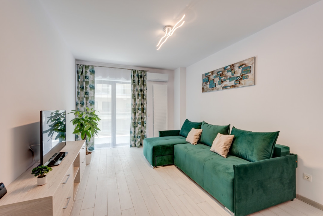 Garsoniera este situata la etajul 9/11, este complet decomandata, cu o suprafata totala de 48,1 mp, din care 38 mp sunt utili, la care se adauga o terasa superba in suprafata de 10 mp. Garsoniera are finisaje si dotari noi. Inclazirea se realizeaza prin centrala termica proprie iar pentru racire s-a instalat 1 aparat de aer conditionat.