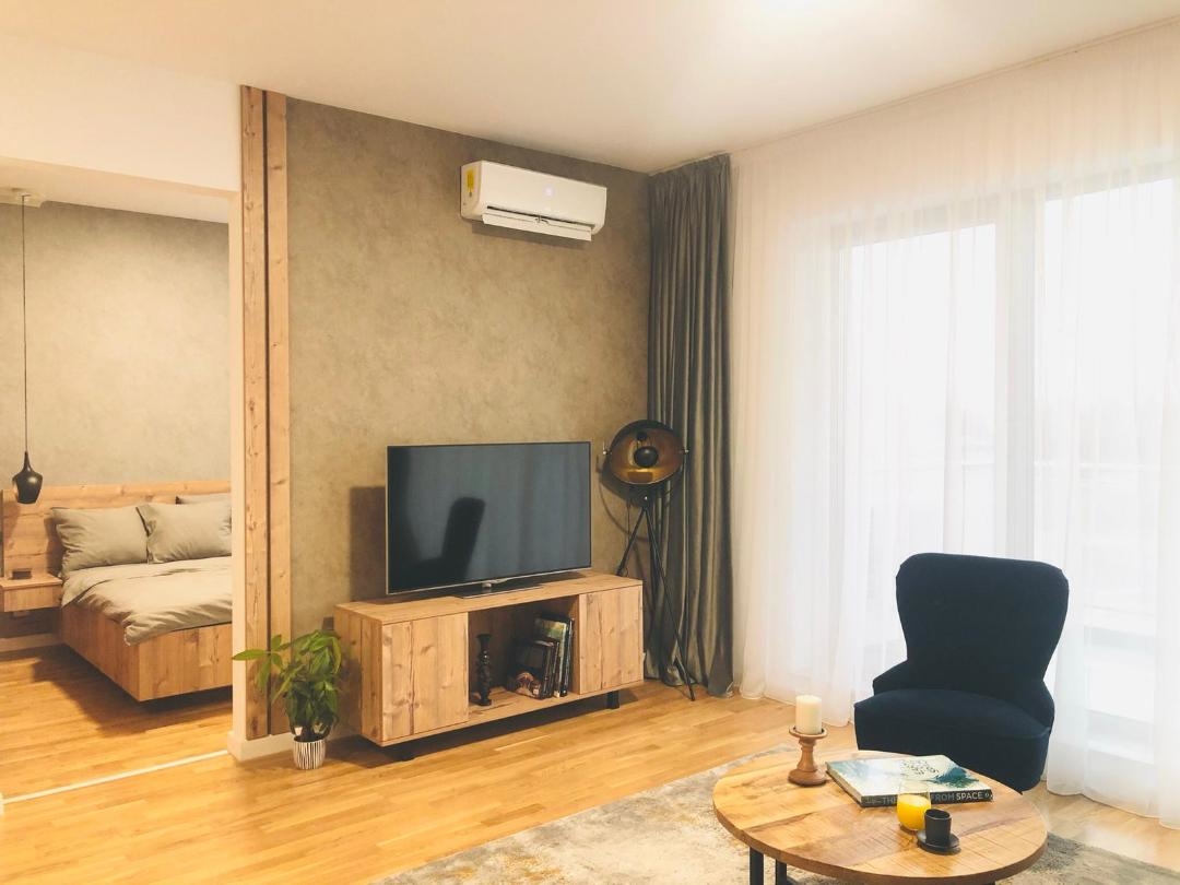 Livingu generos cu acces in terasa,bucataria echipata complet,incluzand masina de spalat rufe si masina de spalat vase,combina frigorifica incorporata,vesela,tacamuri si vase gatit noi.