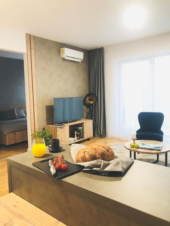 Apartamentul are finisaje de top un design modernist,mobilat nou, minimalist, elegant si utilat cu electocasnice de ultima generatie.