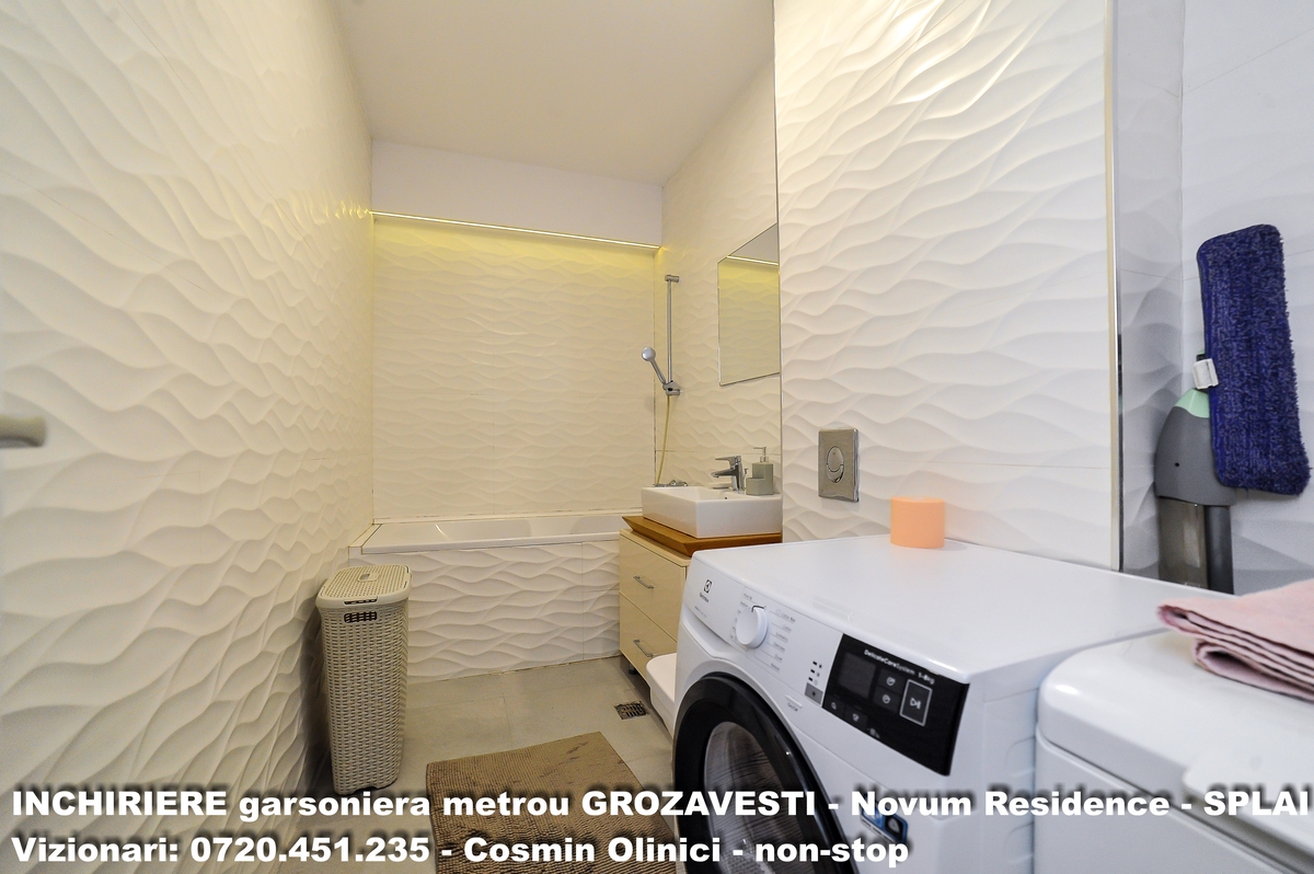 Garsoniera premium Novum Residence, Grozavest, Splai, 5 minunte metrou, et. 2, centrala termica, decomandata, posibilitate loc parcare, 40 mp, pat dublu, balcon, cada, paza, 2 lifturi, liber imediat