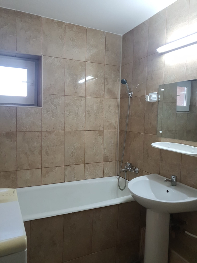 Baie: masina de spalat haine, cada, chiuveta, wc, boiler, geam pentru aerisire, apometre apa, usa lemn, gresie si faianta, calorifer fonta