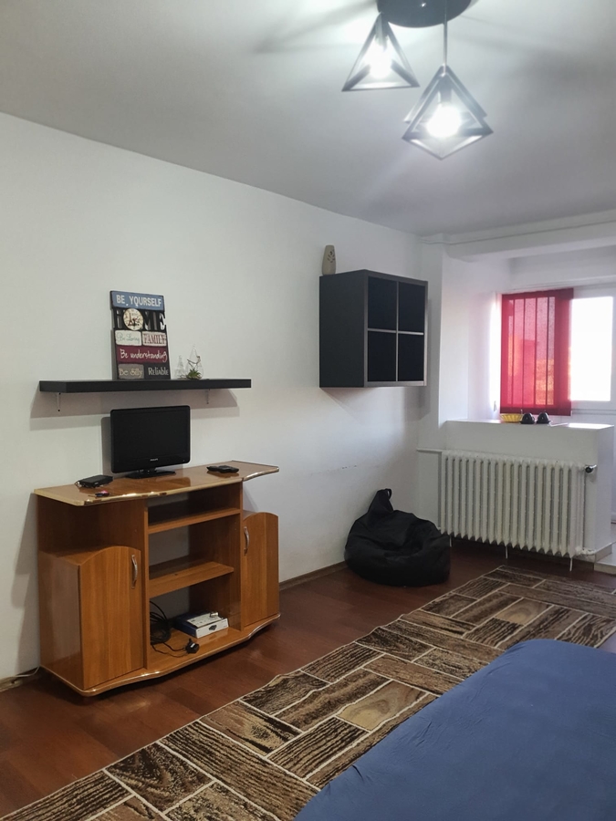 Camera: 2 sifoniere, pat si saltea, comoda, TV, cablu si fir internet, etajera, dulap suspendat, geamuri pentru aersire, parchet, calorifer fonta