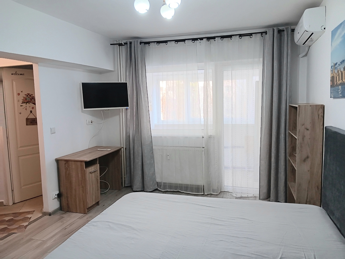 garsoniera, renovata, mobilata in apropiere mijloace de transport, Piata Delfinului, Mega Mall, etajul 3/8. pentru locuit/ bloc mixt. Libera, contract Anaf, fara animale de companie. Acum, detine pat de mijloc nou,