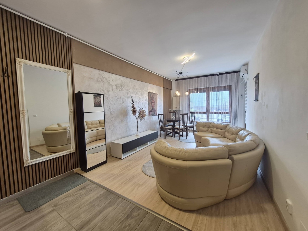 Cartierul Solar - 2 camere (open house), confort 1, etajul 1 din 6, mobilat si utilat modern, balcon, centrala proprie, lift, liber, toate utilitatile, apropiere transport , magazine (langa Metro, Auchan si Jumbo).