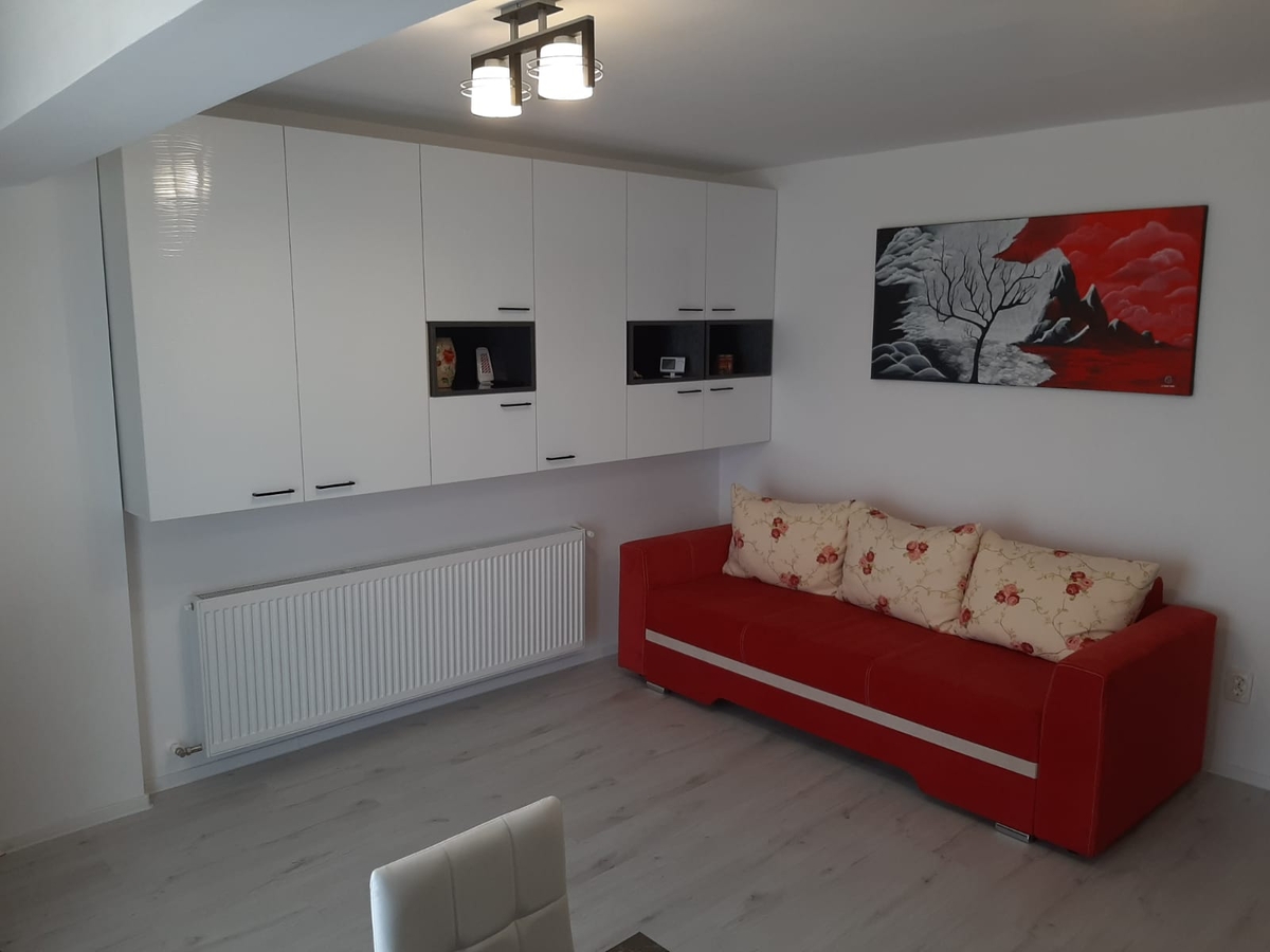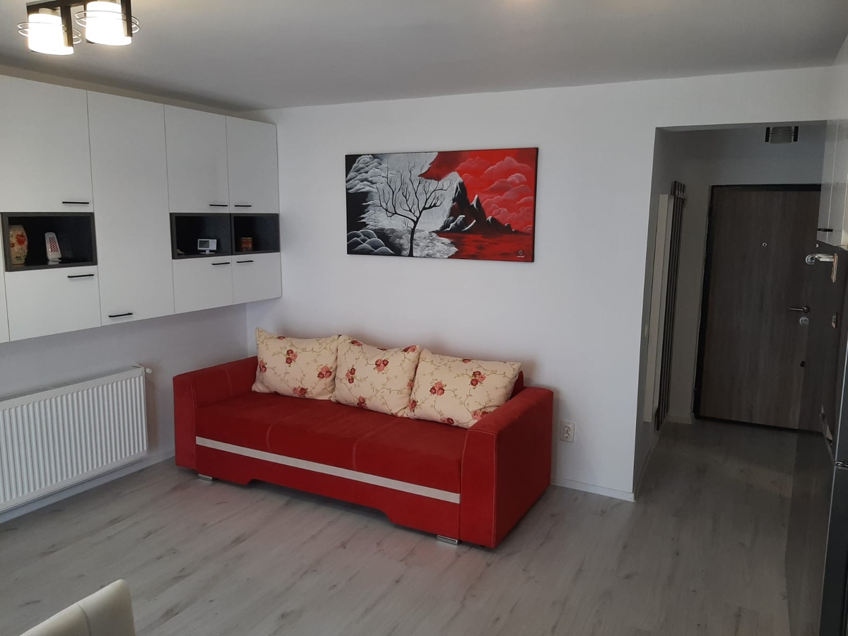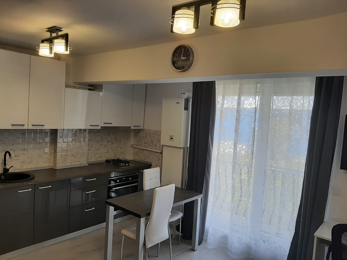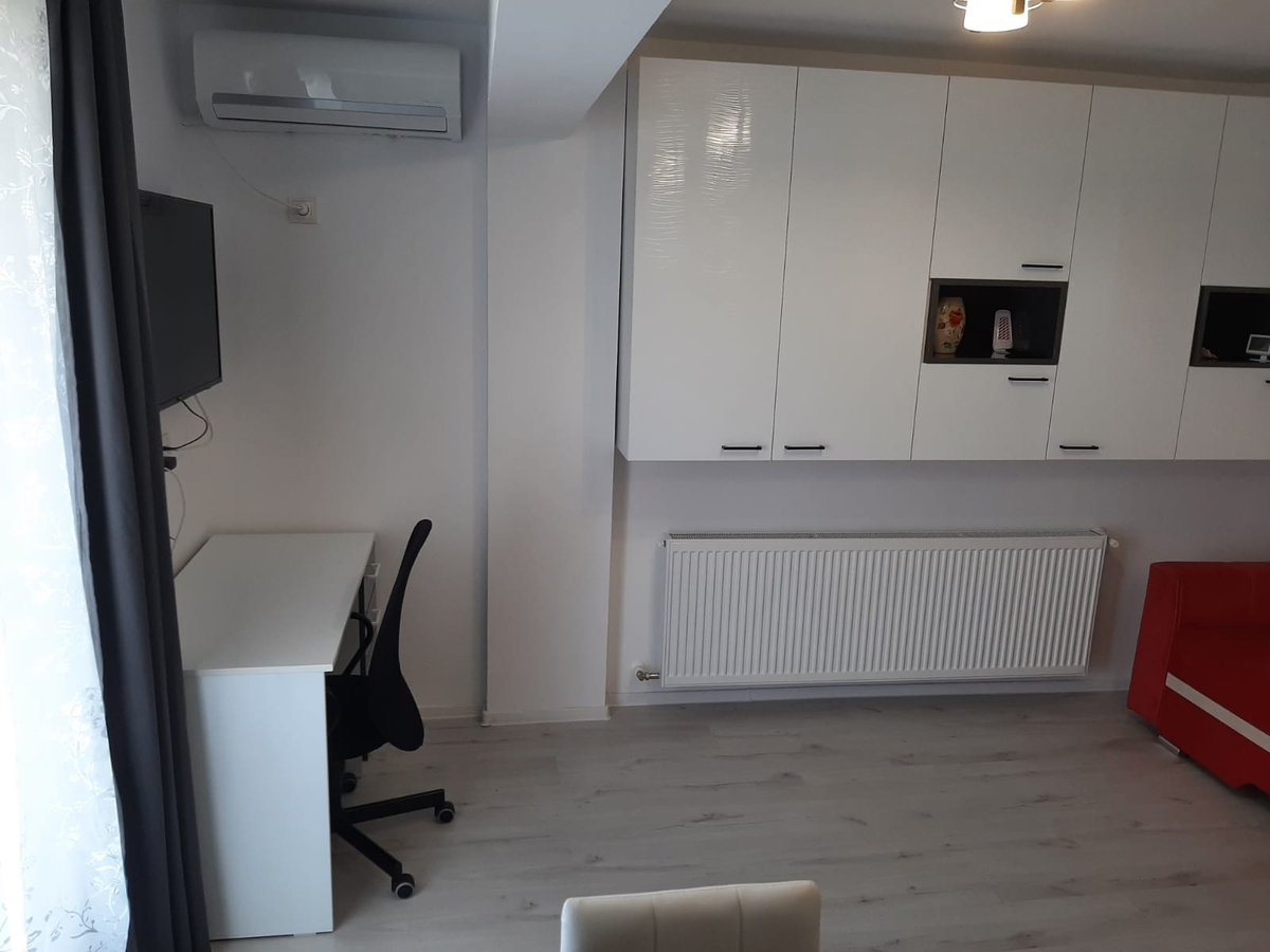 Garsoniera este dotata cu centrala termica, canapea extensibila de marimea unui pat normal, smart TV 80cm, cuptor si aragaz pe gaz.