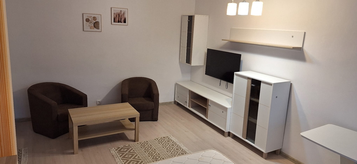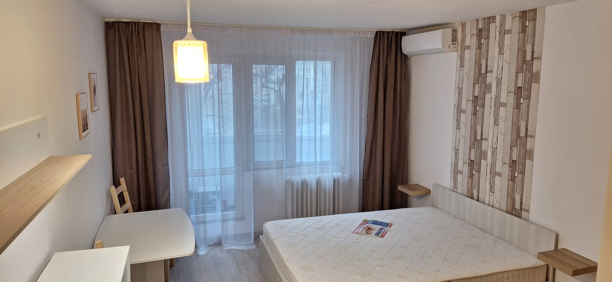 Proprietar, inchiriez garsoniera 7 minute metrou Gorjului, 35m2, decomandata, etaj 1, bloc mixt, reabilitat, balcon, vedere spate - zona verde, renovata, utilata, mobilata. Dressing separat cu spatii depozitare generoase, separator zona de zi/odihna, totul nou si modern, prima inchiriere. 350 E.
