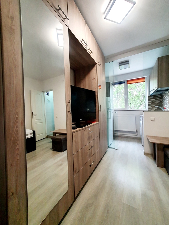 Piata Trapezului, inchiriez garsoniera mobilata si utilata, totul nou, aproape de metrou.Etaj 1 din 5.Mentionez ca se preteaza unei singure persoane .