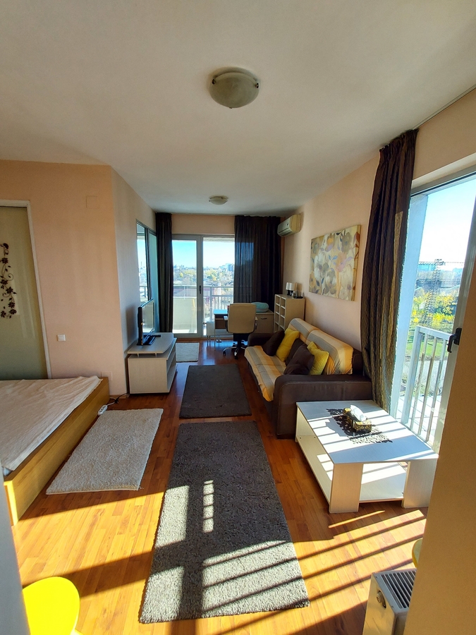 Garsoniera este situata intre SEMA Parc si Parcul Politehnicii in complexul rezidential Quadra Place 1, spatioasa si luminoasa, cu vedere superba spre parcul Politehnicii din balconul de 7 mp. Garsoniera se inchiriaza complet mobilata (pat dublu, canapea extensibila, noptiere, sifoniere, comode, masute, birou scaun ergonomic, mobiler bucatarie) si complet utilata (aer conditionat, frigider, plita vitroceramica, cuptor, cuptor cu microunde, televizor, ab cablu, internet fibra si router wireless, masina de spalat, feronerie Kludi, contor de energie termica individual, apometre). Scara este dotata cu doua lifturi moderne Schindler.